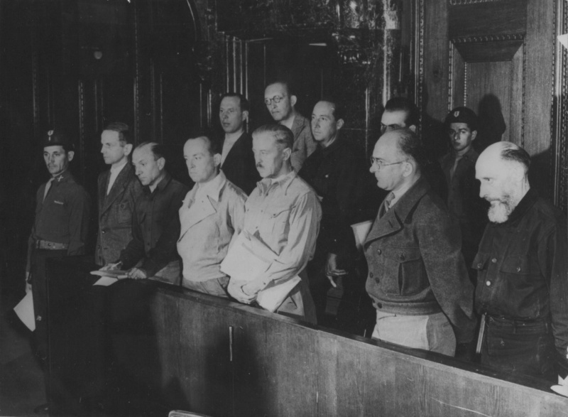 Бывшие офицеры СС на скамье подсудимых Нюрнбергского процесса по делу об айнзатцгруппах