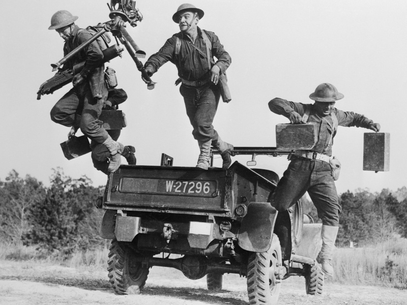 Американский растчет станкового пулемета Browning M1917A1 высаживается из армейского пикапа Dodge WC21. 25.11. 1941