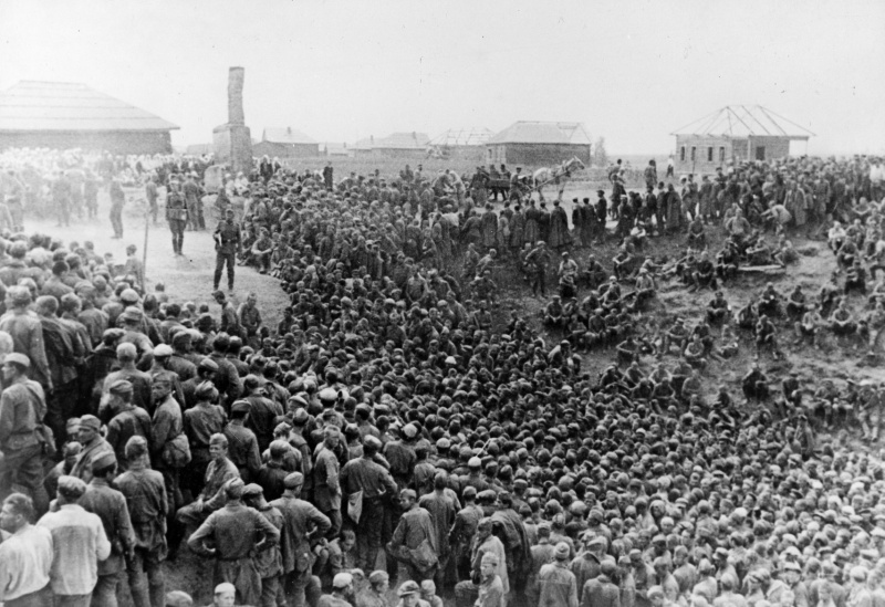 Пленные красноармейцы, захваченные частями 4-й армии вермахта в боях за Смоленск. Август 1941 года.