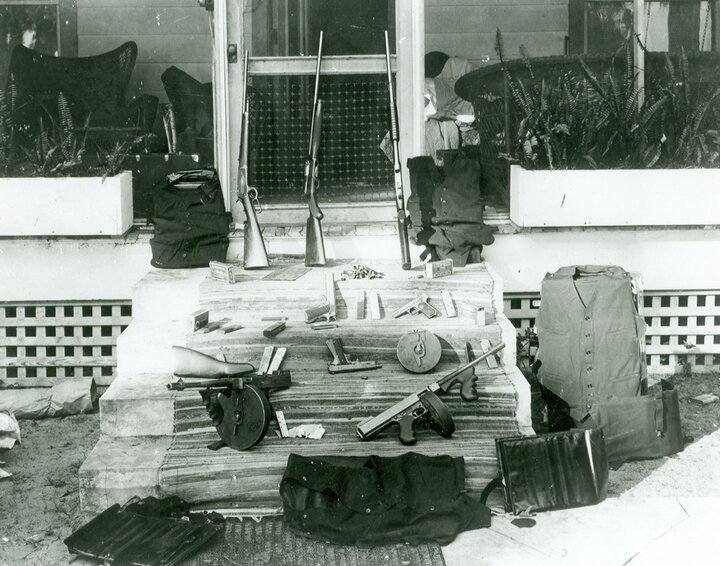 10 июня 1931 – Фред Баркер и Элвин Карпис (псевдоним Джордж Хеллер) арестованы полицией Талсы, штат Оклахома, расследующей кражу со взломом. Карпис приговорен к 4 годам, но условно освобожден после реституции; Фред Баркер также избежал тюремного заключения.