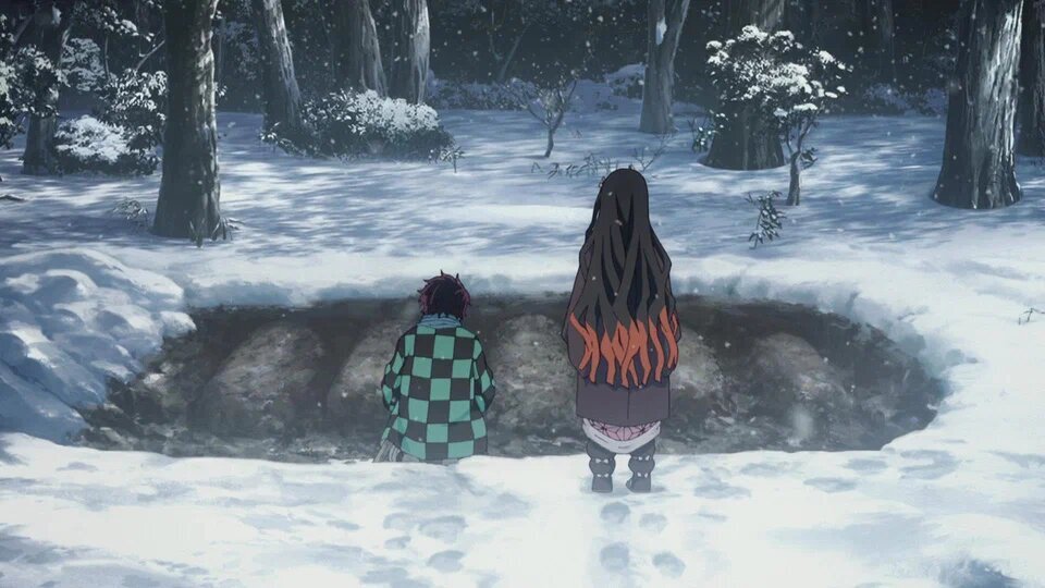 Интерьеры здания поражают воображение, а его многослойность действительно не знает границ. Во время красочных сражений камера регулярно совершает сложные пролеты, преследуя персонажа и сопровождая его молниеносные атаки. За два с половиной часа герои много раз схлестнутся в жестокой битве, и каждое сражение — настоящее произведение искусства. Бои не только талантливо поставлены и смонтированы, но очень красиво нарисованы: индивидуальные дыхательные стили, работа с цветом и тенью, глубокие фоны и проработка всех материалов и предметов — результат невероятного труда аниматоров. Неудивительно, что лишь немногим тайтлам за шесть лет удалось достичь такой безупречной глянцевой красоты на экране. Конкуренцию «Истребителю демонов» составить могут разве что «Магическая битва», с натяжкой «Человек-бензопила» и «Поднятие уровня в одиночку».