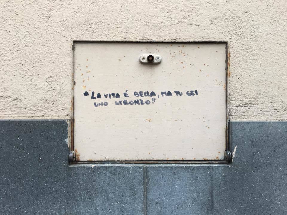 7 msk2003 Итальянский юмор 7 лет назад Надпись: "la vita bella, ma tu sei uno stronzo" - «Жизнь прекрасна, но ты кусок дерьма» Юмор Италия Черный юмор