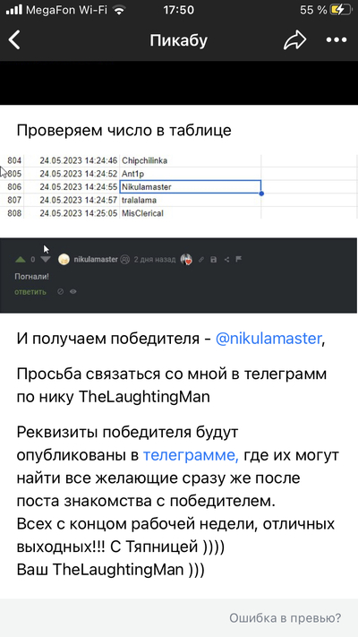 Реквизиты победителя будут опубликованы в телеграмме, где их могут найти все желающие сразу же после поста знакомства с победителем.