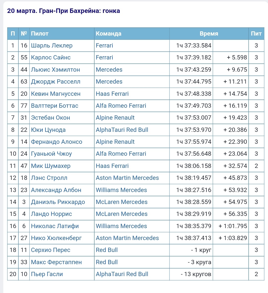 Заслуженный дубль Феррари, несмотря на старания их стратегов, довольно плотный финиш первой десятки, Хаас и обе Альфы в очках и слёзы фанатов быков. Сезон точно будет огонь