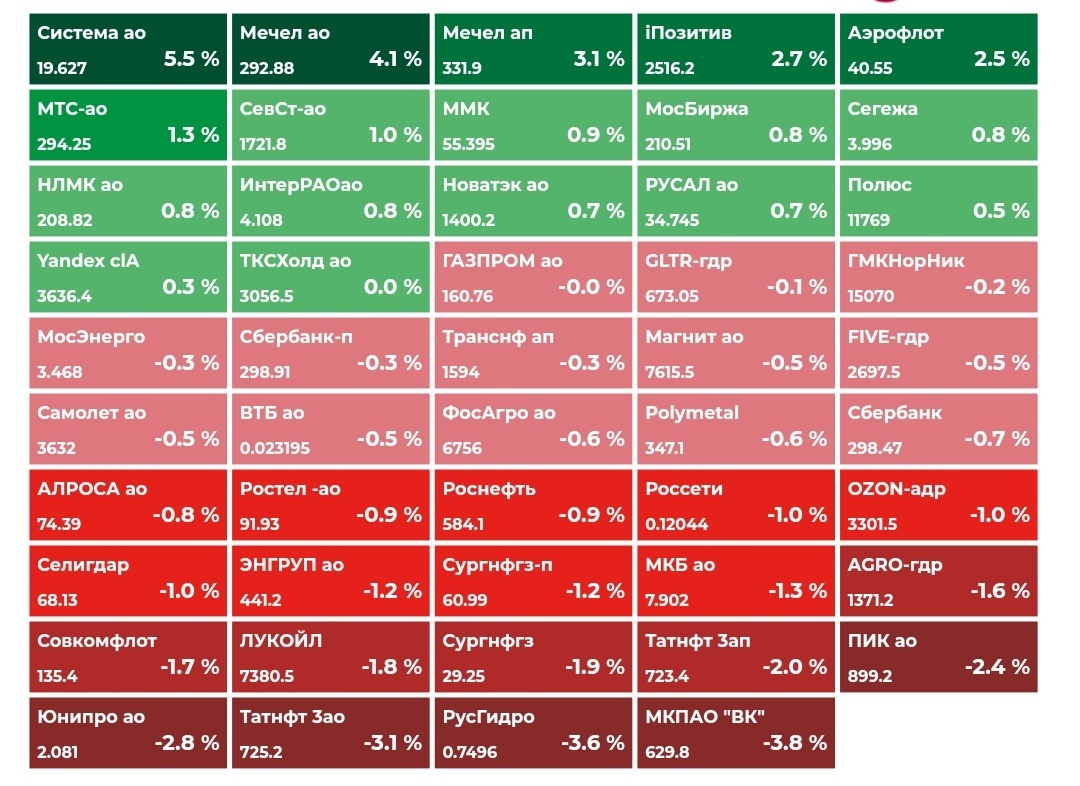 + Индекс Мосбиржи снизился на полпроцента, но пока выше 3300 п.