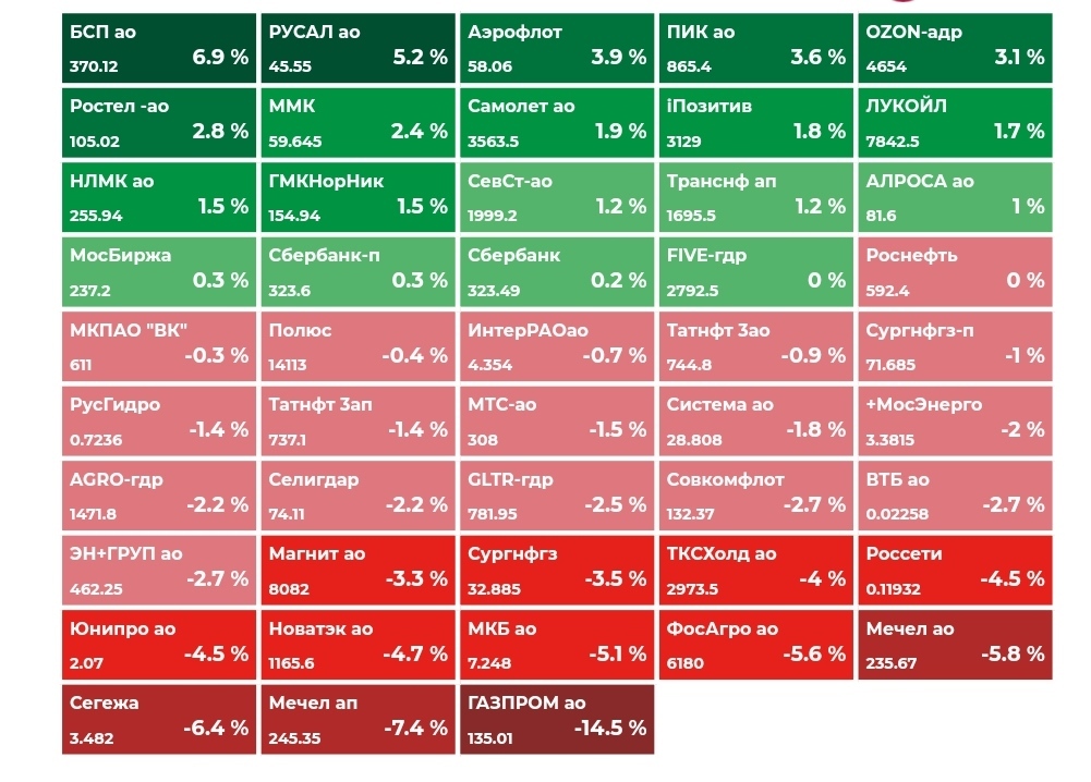 Газпром теряет почти 15% после рекомендации не платить дивиденды за 2023 г. Сбер снизил целевую цену со 180 до 95 рублей.
