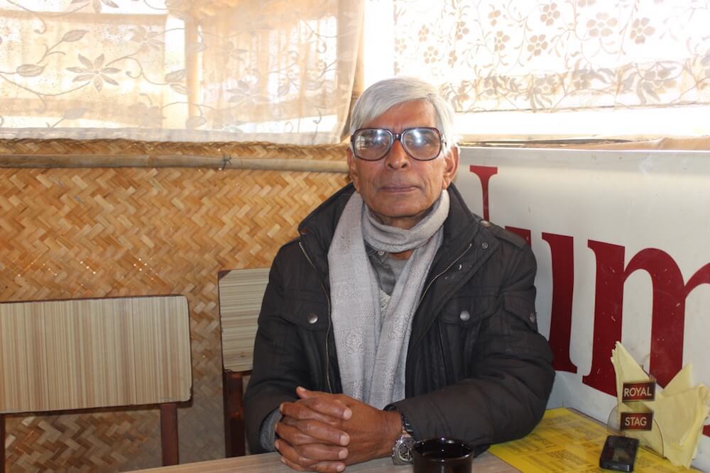В придорожном кафе в районе Чабахил, Катманду, Хагендра Сангрол сидит один за столом, курит и пьет чай.
