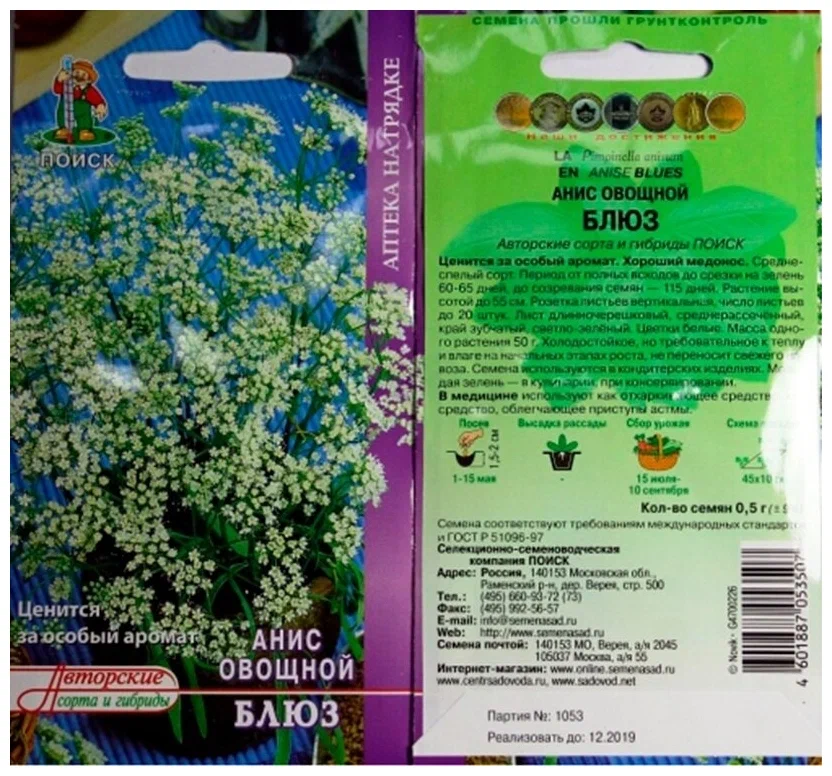 Анис овощной Блюз - сажала по правилам Спарты - выживет молодец - нет так нет. у него надо семена обрабатывать холодом, но тем не менее взошли три штуки, пахли аптекой и умерли по очереди достигнув высоты см 15. сажать не буду - просто так покупала попробовать.