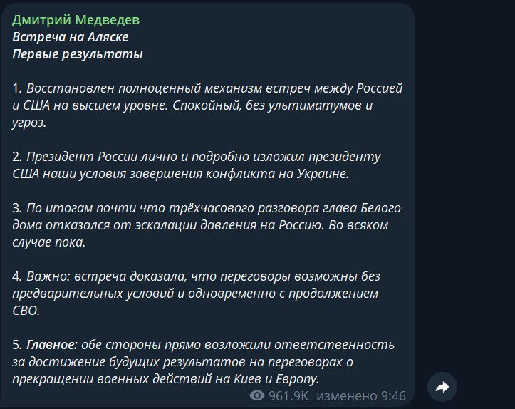 [Как я и писал вчера "Трамп не может самостоятельно подписать перемирие за Украину", и уж тем более он не может обещать отдать РФ какие-то украинские территории, так что ожидать чего-то подобного не стоило.]