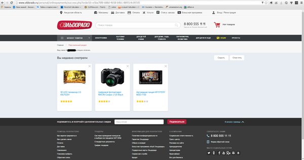 Но через пару часов приходит замечательная СМС от Эльдорадо : "Уважаемый клиент, Ваш заказ № отменен. Эльдорадо". Небольшое офигевание и звонок на горячую линию.