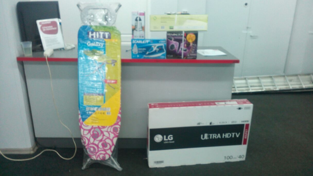 Долго думая и рассуждая со своей девушкой, что нам надо домой. Решаем, что можно купить телевизор, утюг, фен, гладильную доску и терку. Должны уложиться, если что добавлю наличкой.