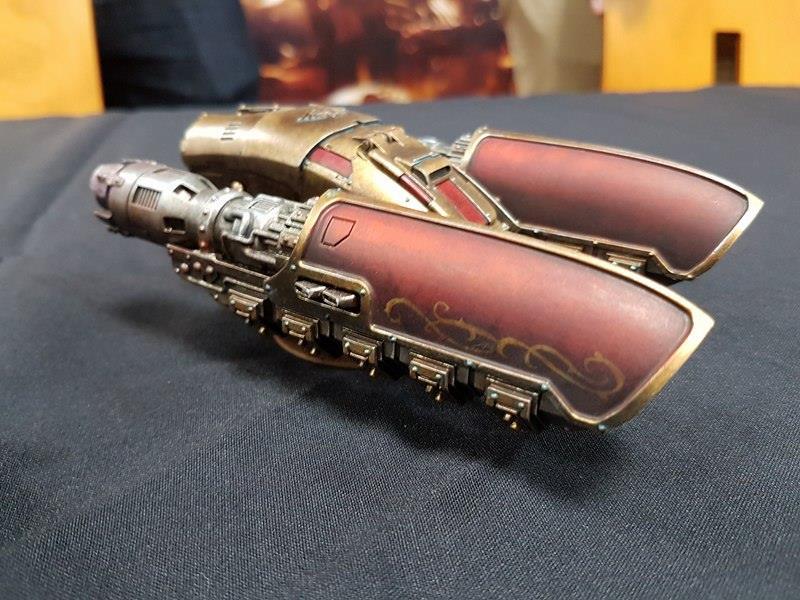 Форджа не будет производить модели пехоты Кустодиев (покупайте коробки с пластиком от ГВ), но будет производить апгрейды из смолы, которые позволят создать специальные отряды. Помимо Грав-танка и скиммера на выставке был показан Контемптор Дредноут Кустодиев. Когда будете его рассматривать, обратите внимание на встроенный в меч огнемёт. Встроенные оружия в оружия похоже стали фишкой Кустодиев.