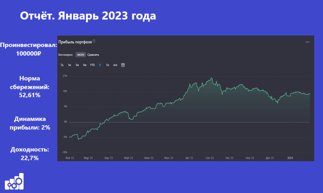 Итого сумма инвестиций: 100000₽, норма сбережений составила 52,61%
