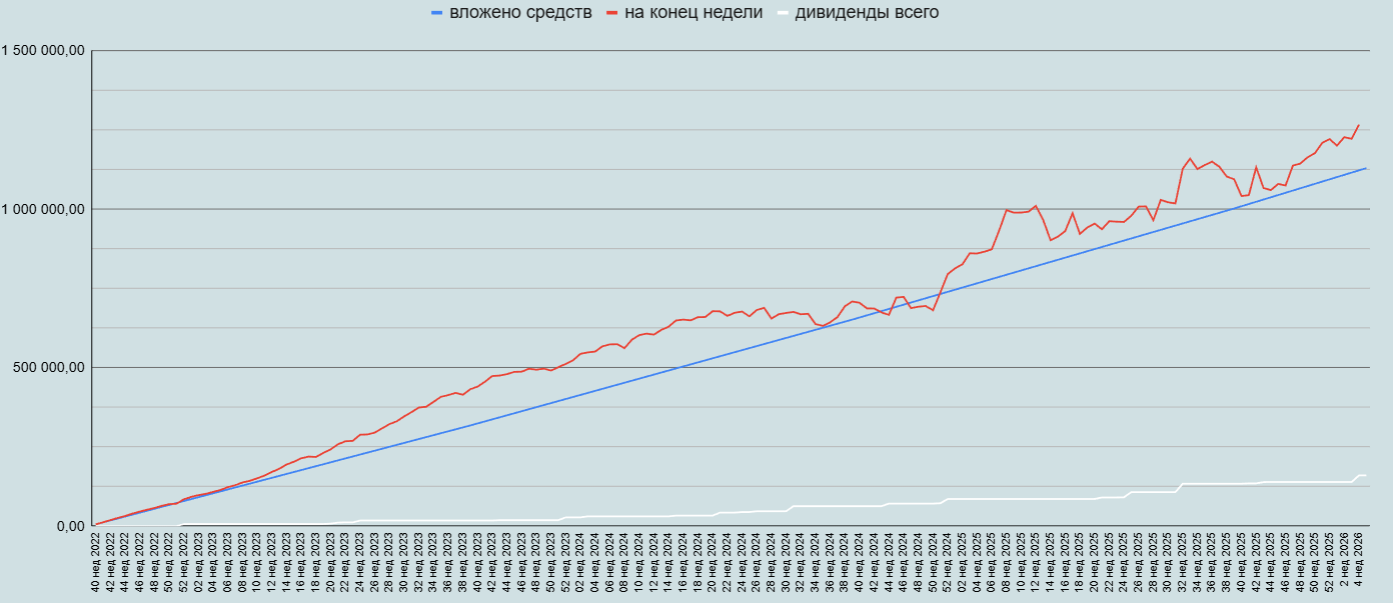 Напоминаю, цель эксперимента - не выявление лучших способов инвестирования, а проверка возможности достижения возможности "выплаты себе" пенсии в будущем для любого желающего, кто не может и/или не хочет разбираться в тонкостях биржи, акций и других ценных бумаг.