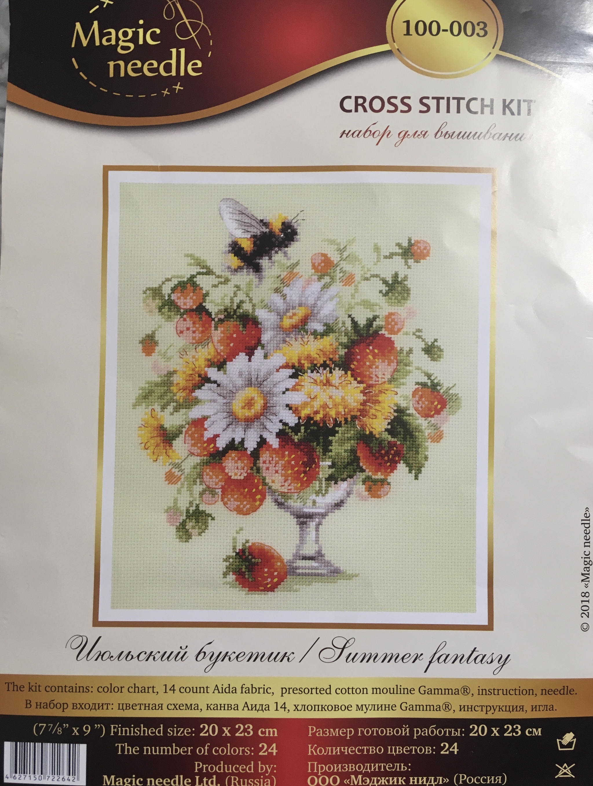 Закончила вот такой набор от «Чудесной иглы» на нежной салатовой канве.