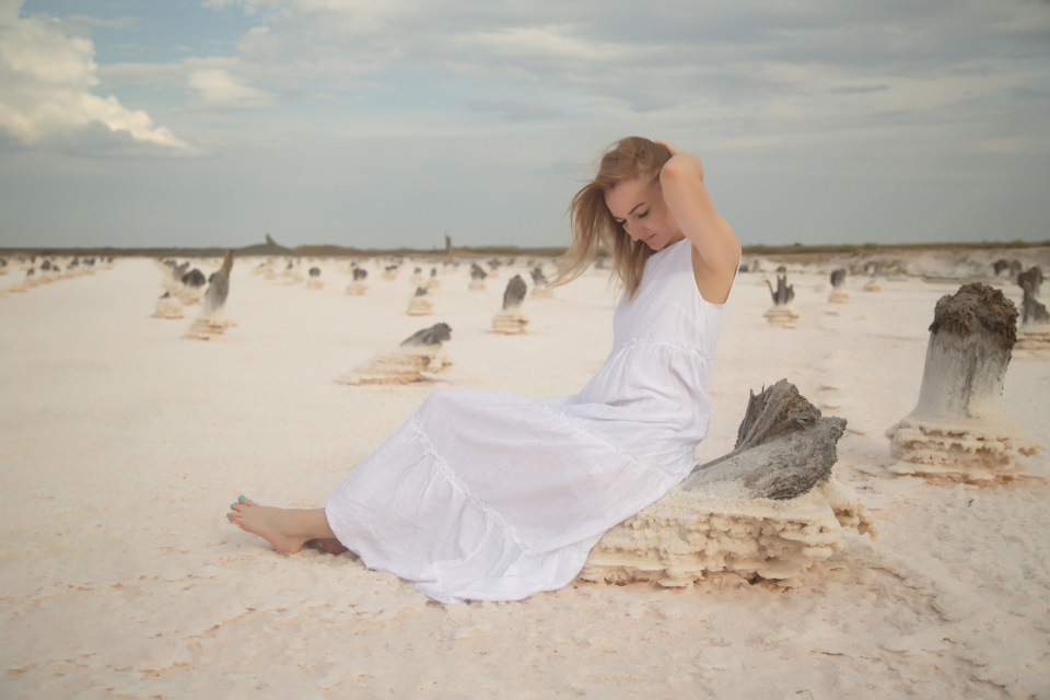 Развернулись, поехали обратно в сторону посёлка. И в какой-то момент увидели ОТКРЫТЫЙ шлагбаум))) Спокойно проехали. По холмам и грязи добрались в итоге до самого озера. Ну как "озера", до той самой соляной корки. Смотрите фотки))