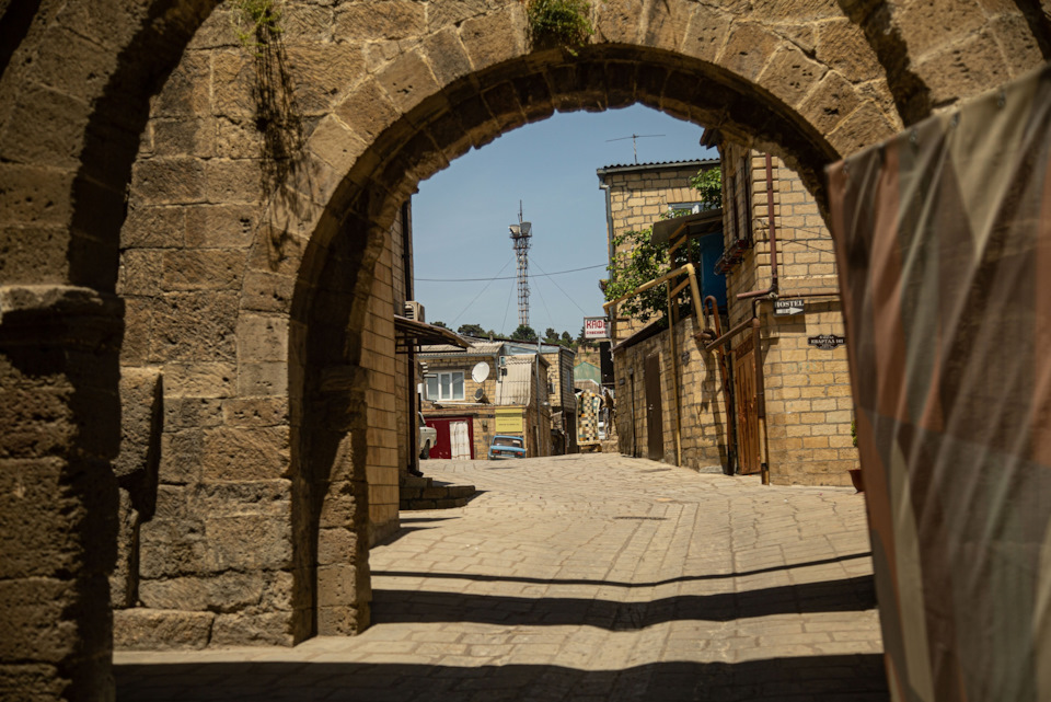 Приехали сначала мы к крепости Нарын-Кала, прогулялись по магазинчикам. Купили отличнейшую тарелку ручной работы, остыли под кондиционером, и на выходе из магазина нас перехватил паренёк лет 13-ти, зазвал на экскурсию по старому Дербенту на электромобиле.