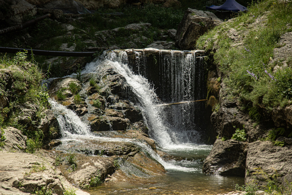 Заехали на Салтинский водопад. Он тут: 42.390565, 47.066600