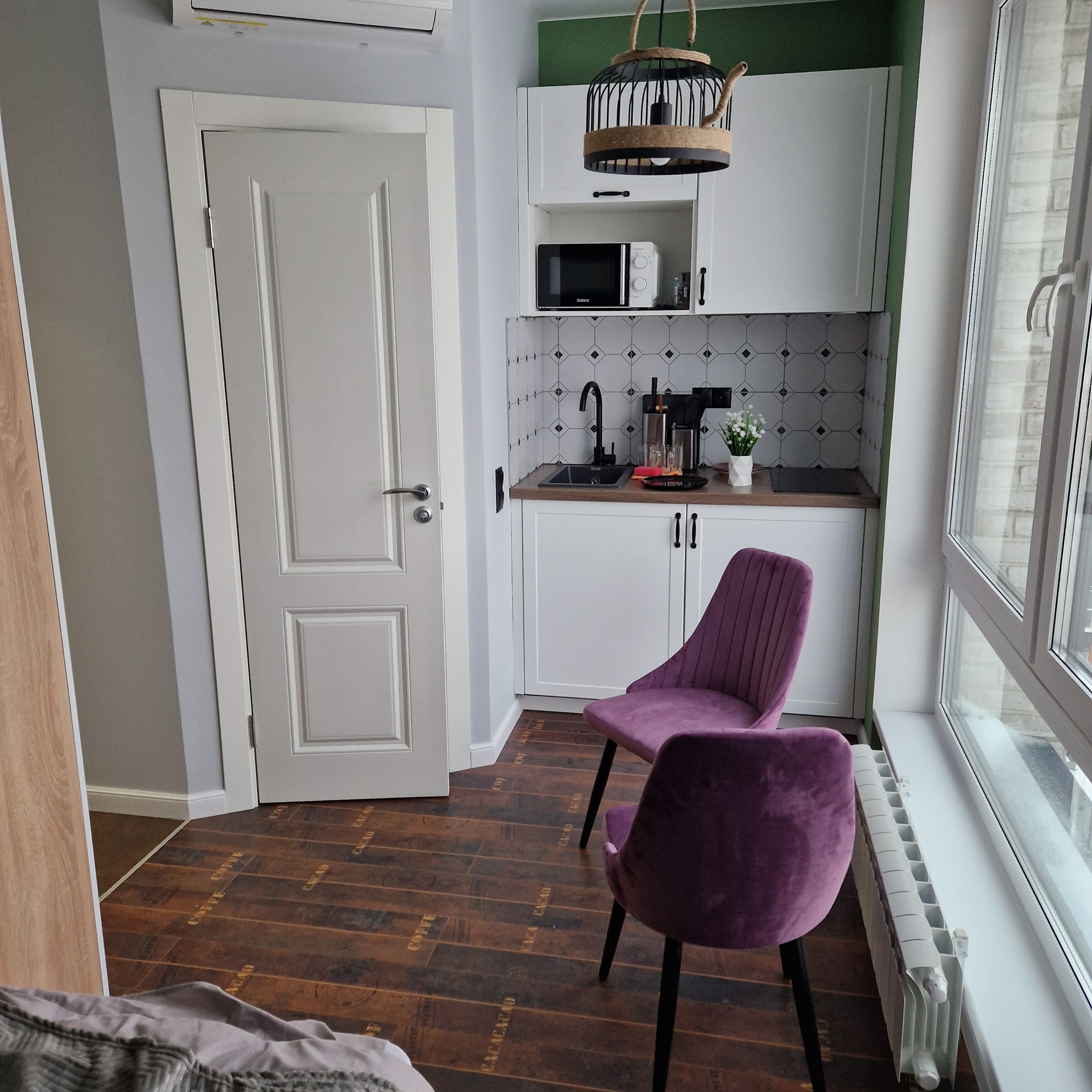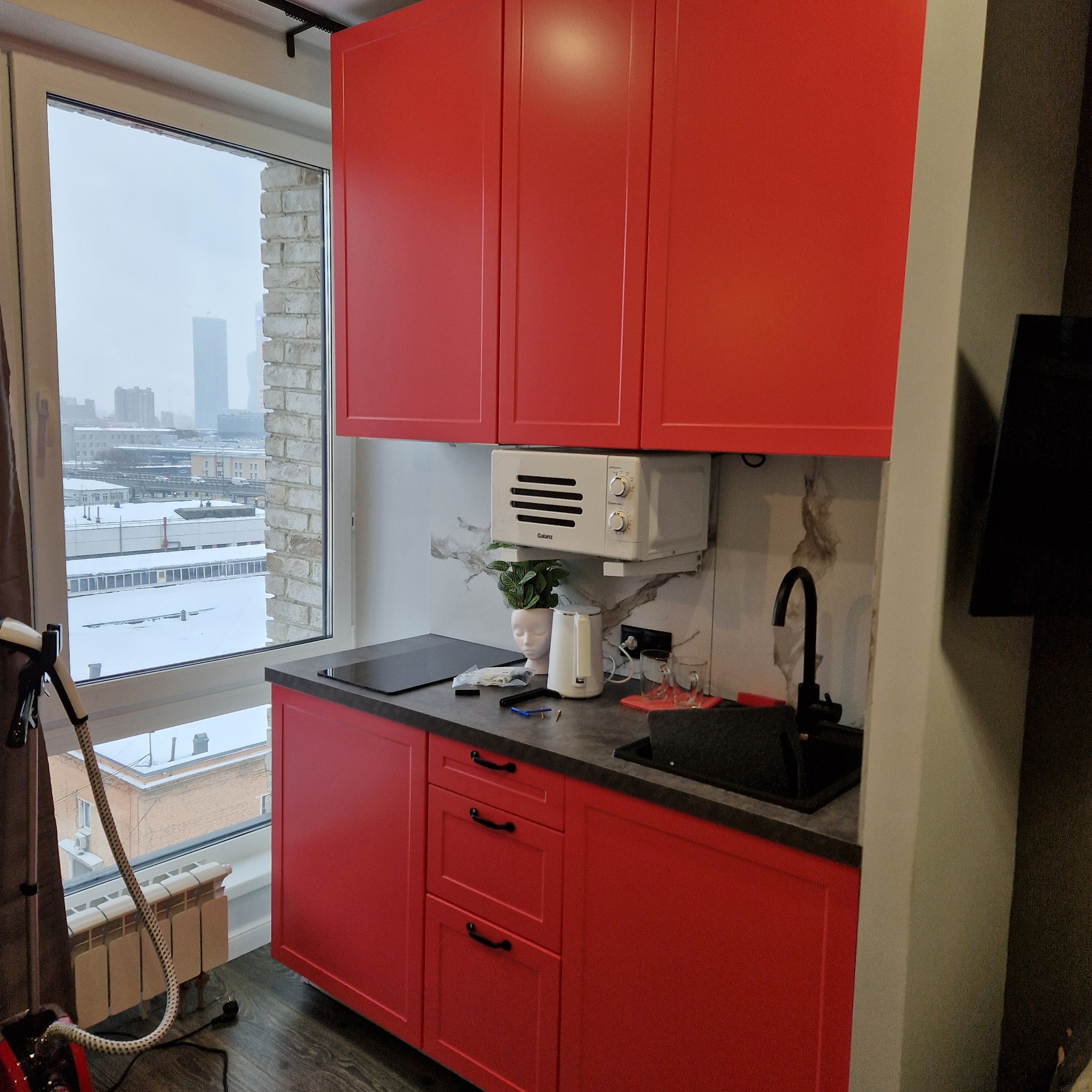 По прямой белая кухня, которую мы не красили, но сфотографировать я все равно решил)
