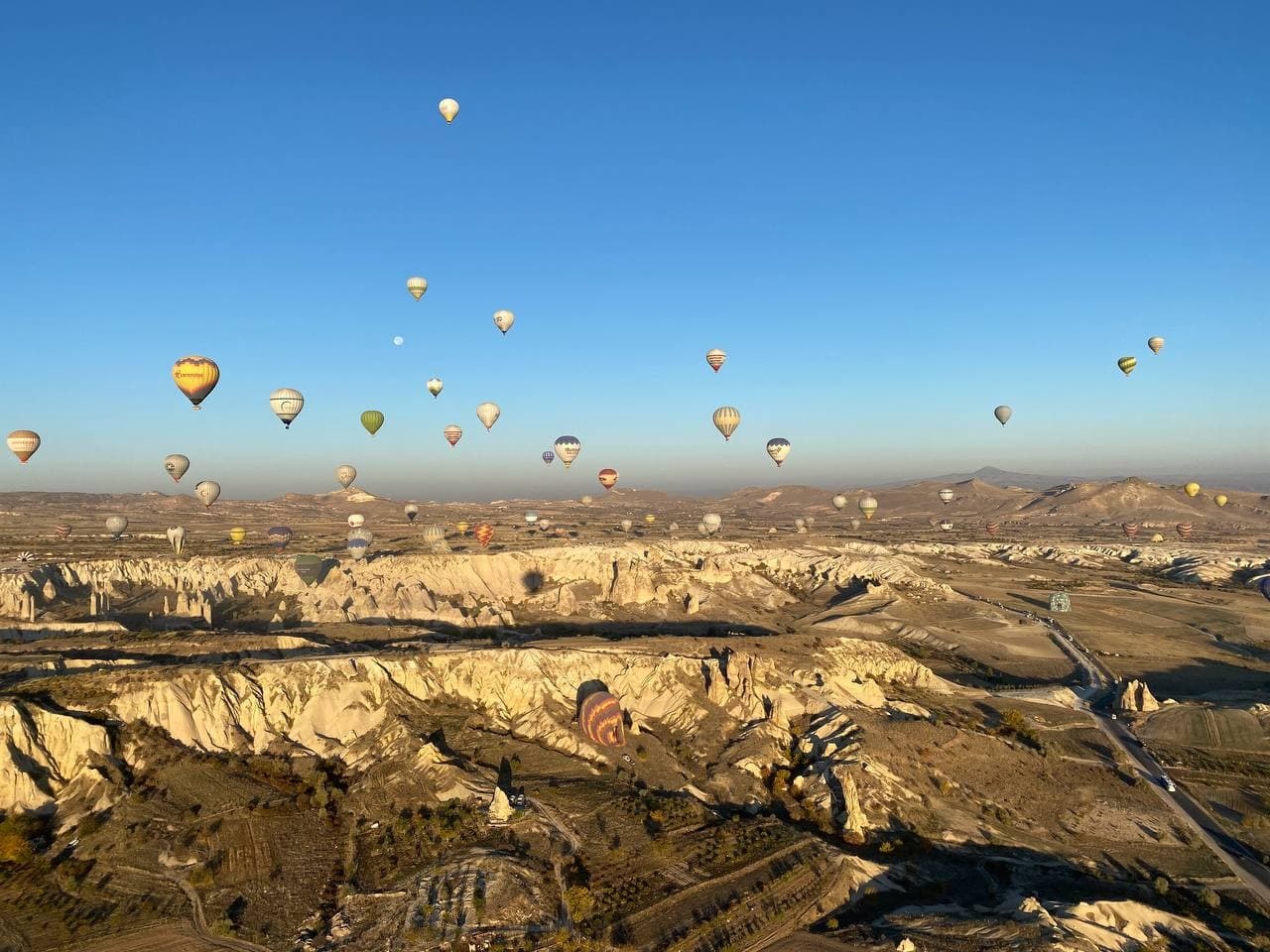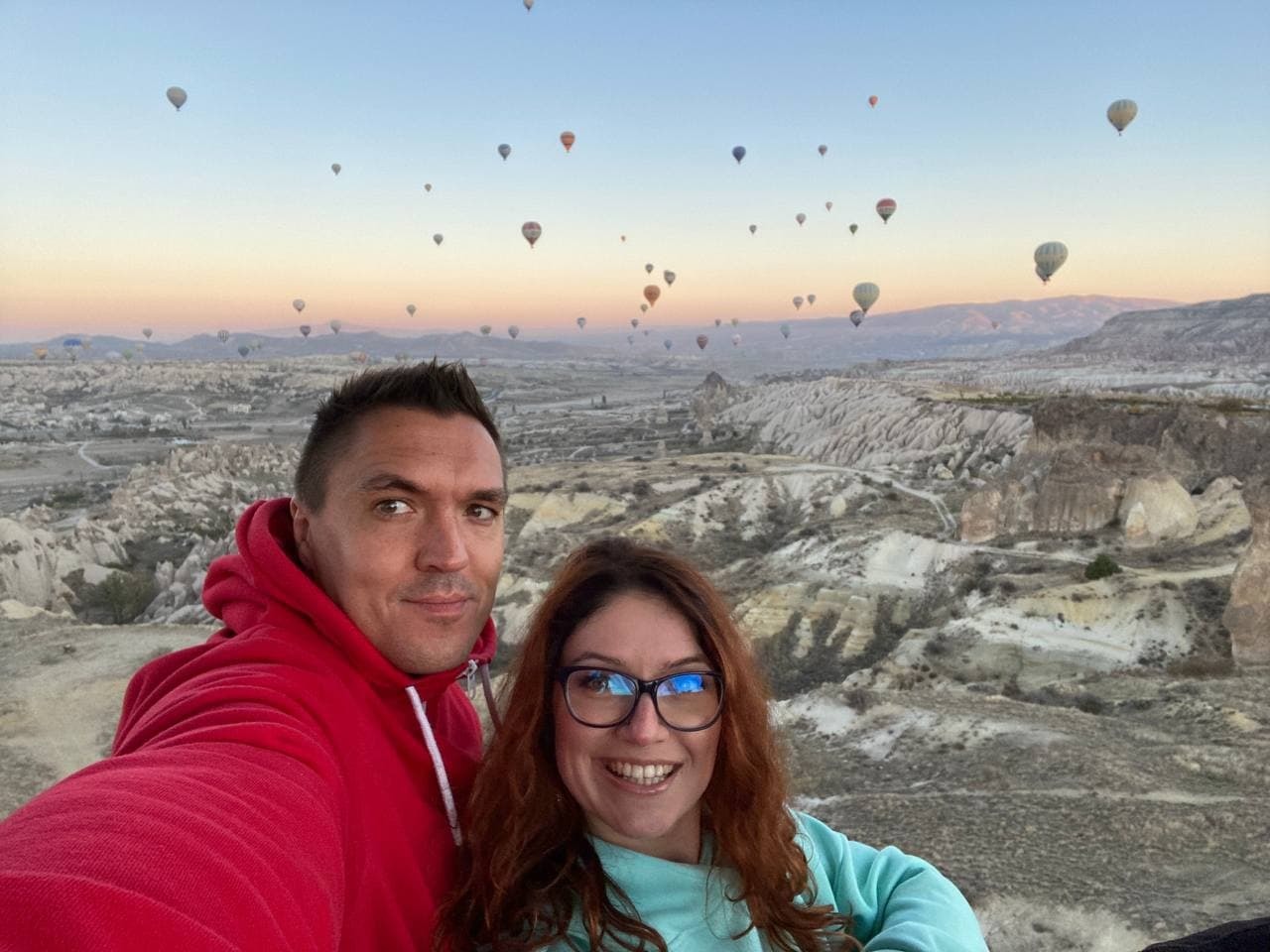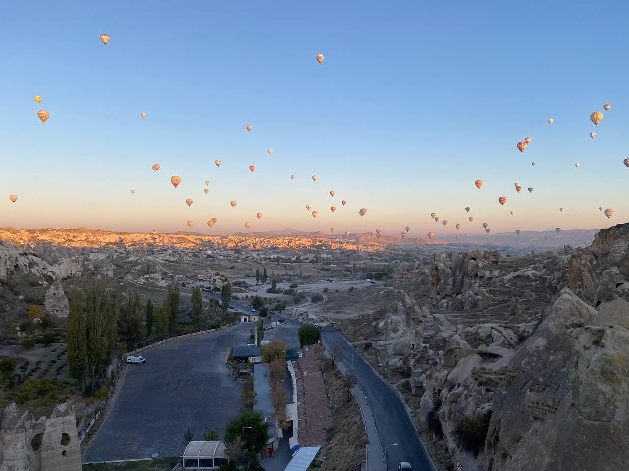 Честно, не знаю, как в Каппадокии в другое время года, но в октябре погода днём 15-20 градусов с пламенным солнцем. Я тут же сгорела. А вот ночью приближается к нулю. Очень холодно☹️ Поэтому советую запастись тёплой одеждой, солнцезащитным кремом и легкими маечками😅 В шаре холодно не будет, тк он двигается на огне, а вот до/после возможно 😅