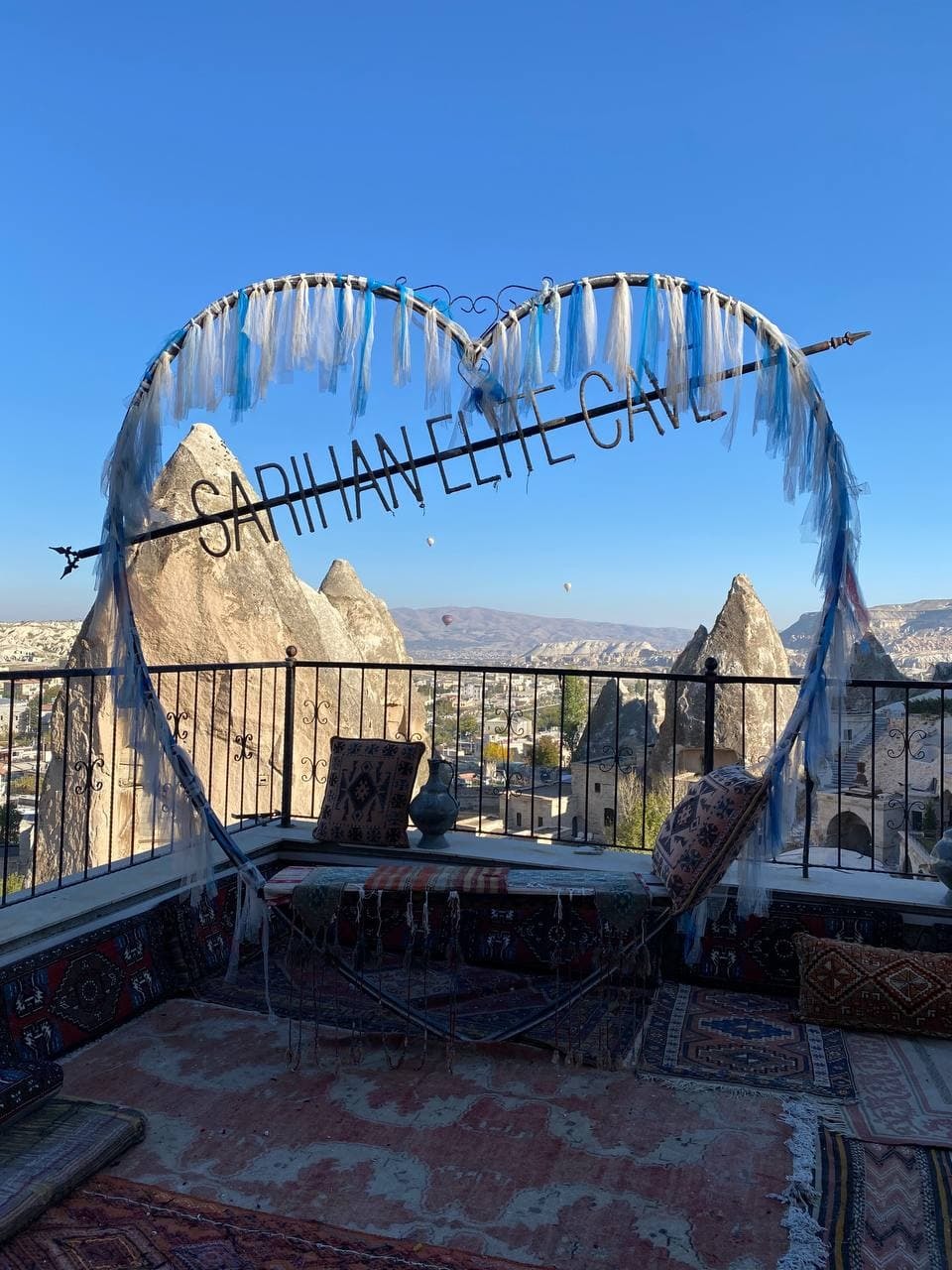 Вид с веранд открывался очень так же очень красивый. Но к сожалению солнце по утрам, когда летают шары, там не было. А на обзорной площадке оно есть. Но, думаю, в летний период, когда много туристов, эти веранды в отеле очень выручают.