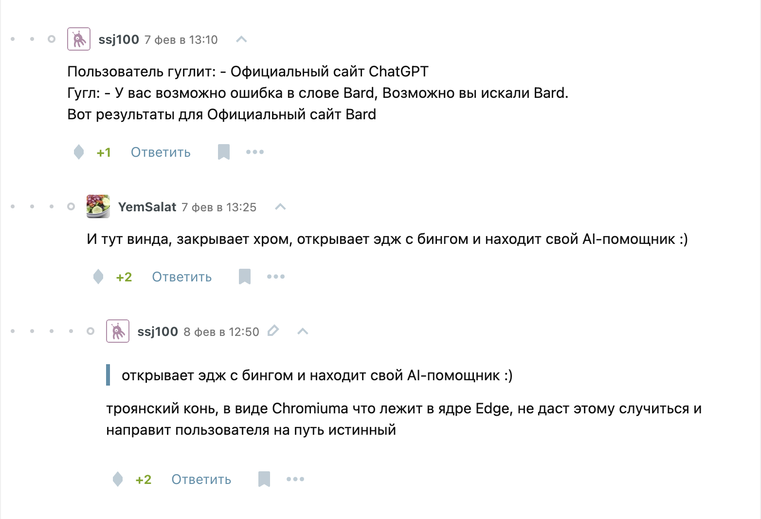 Из обсуждения чата GPT и Bard (который от Google)