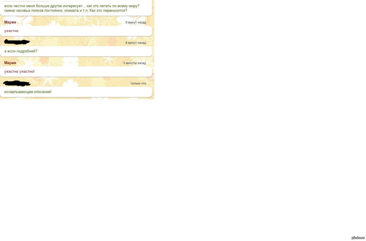 Azatan Из разговора со стюардессой 11 лет назад Зато девушка очень красивая! [моё] Стюардесса Общение