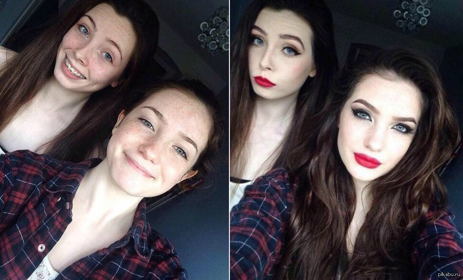 и все такие в афиге, даже смешно здесь еще мало сила макияжа раскрыта, девушка миленькая, немного тоналки, подрисовали брови и тени кожа у нее нормальная а вот стоит посмотреть как маскируют акне и прочее, да и вообще.. короче говоря, это не предел. и имхо, без макияжа она очень милая :з