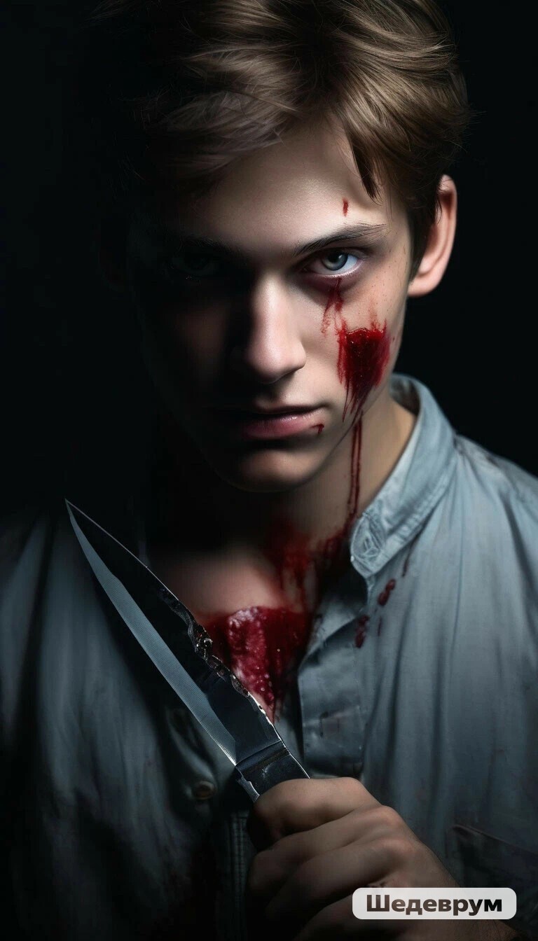 Напротив него стоял Стас, прижимая к себе напуганную девочку, у её горла он держал большой армейский нож.