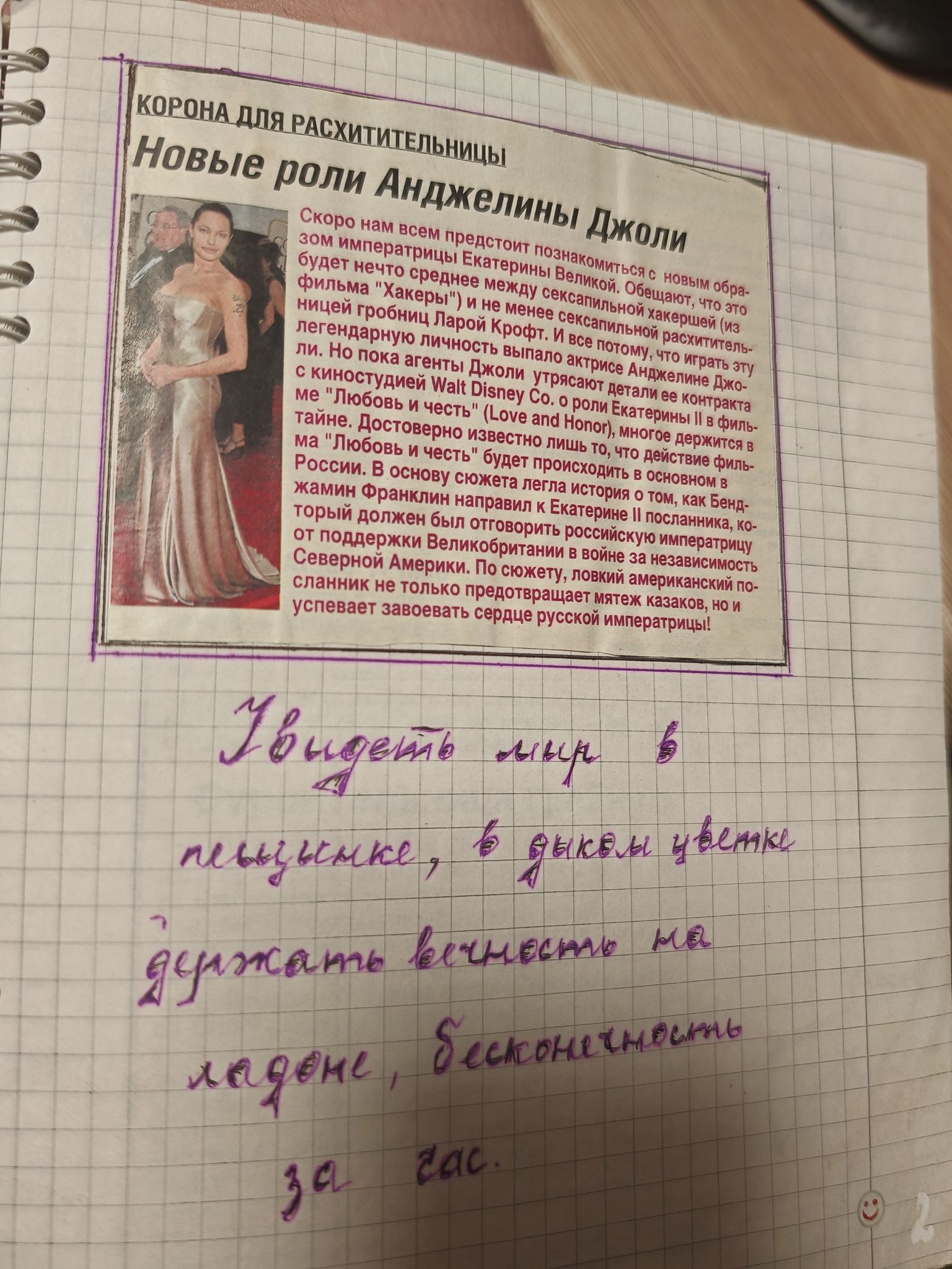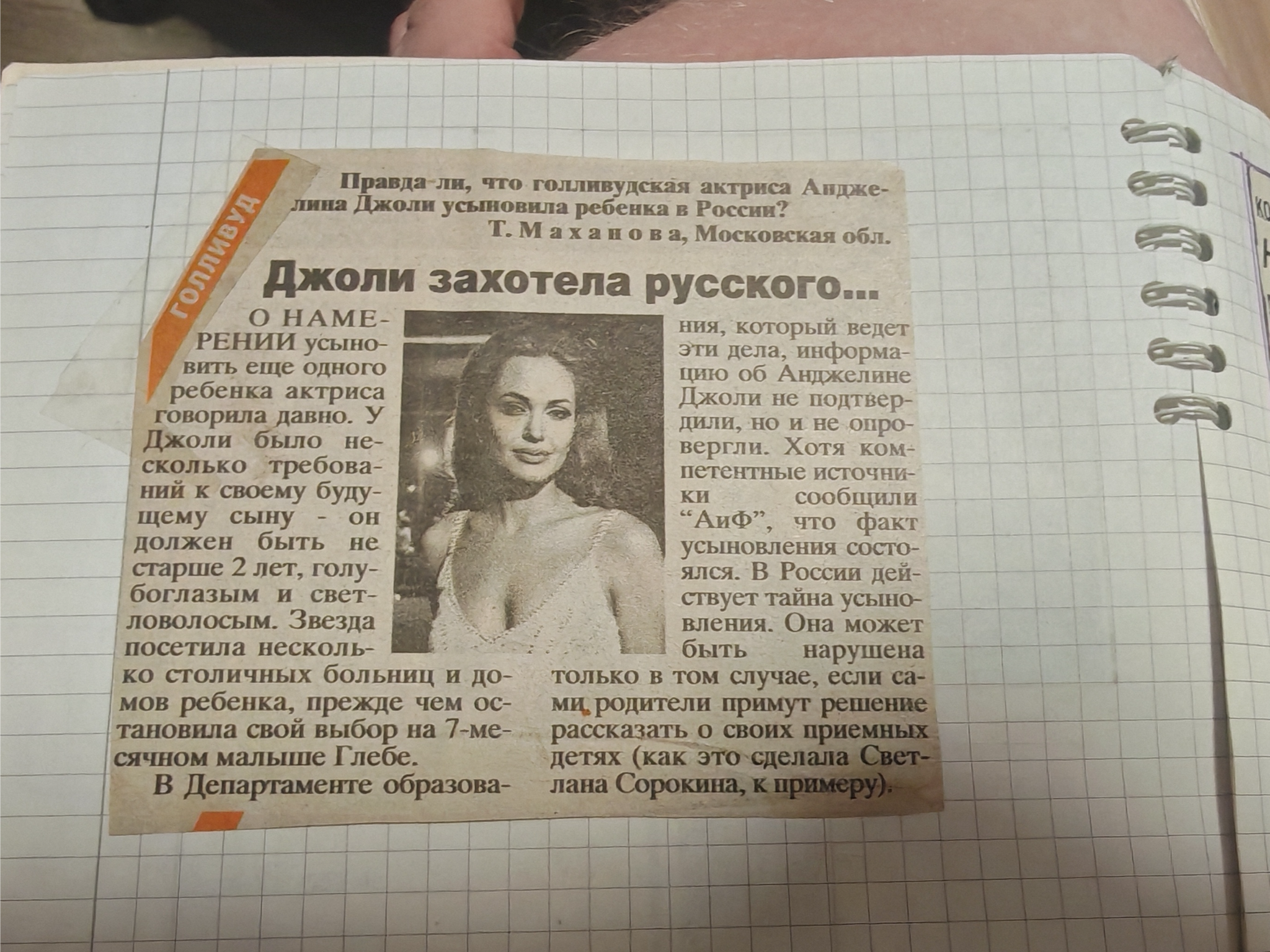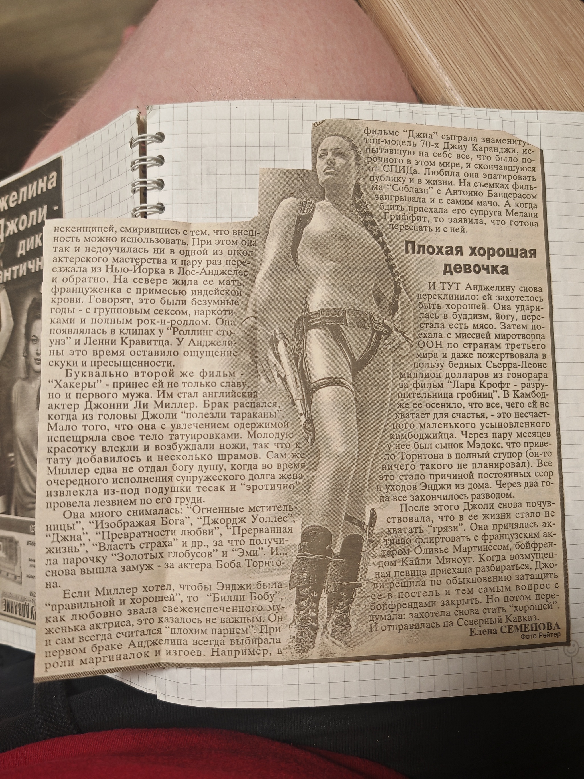 Как по мне - это шедевр! Она собирала это в 13-15 лет, т.е. 2002-2003 год. Интересно посмотреть, как менялся вектор интересов от Анджелины Джоли до Михаила Горшенёва))