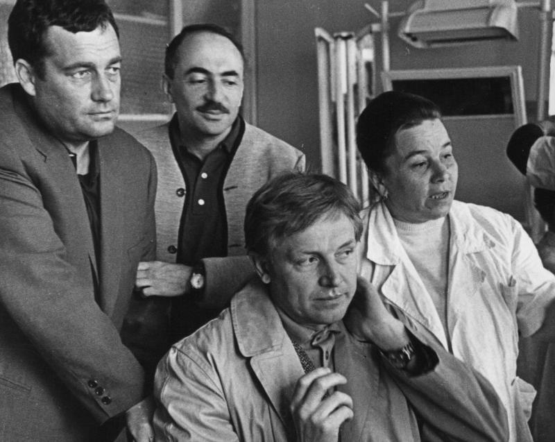 Возникла благородная мысль: раз Смоктуновский не может участвовать в фильме, отказаться от картины, не снимать. Я помню, как в одной из комнат собрались операторы-постановщики Нахабцев и Мукасей, художник Немечек, второй режиссер Коренев, художник по костюмам Быховская, чтобы всем вместе решить эту дилемму. Снимать или не снимать? Быть или не быть?