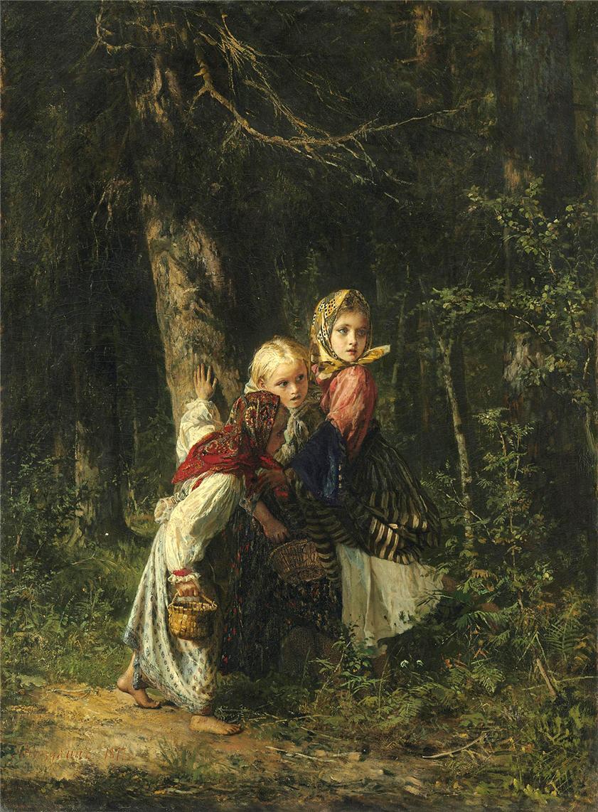 Вот начались и посиделки. Выбирают в деревне избу, которая была бы больше других, и просят ее хозяев позволить гулять в ней; только что станет смеркаться, девушки начинают собираться. Помолившись Богу и поздоровавшись, садятся они с пряселками на лавки и готовятся прясть. За девушками и старый и малый — все спешат в избу; и наконец на лавке, на полатях и на печке везде народ. Ребятишки, забравшись на полати и облокотившись на воронец, глядят, как собирается веселье. На печке две-три старухи, перешептываясь, также поглядывают на молодежь. В заднем углу и под полатями дремлют старухи за прясел-ками. Девушки в лучших шерстяных и ситцевых платьях и две в шелковых, с атласными на головах повязками и цветами занимают места на передней лавке. Девушки, одетые хуже других, садятся вместе и подальше от хорошо одетых. Весело и торопливо прядут девушки, умильно поглядывая друг на дружку и ласково перешептываясь. У одних разговоры про наряды, у других — про молодцев: придет ли тот? придет ли этот? Третьи поют довольно громко какую-нибудь голосовую песню, которая дает знать, где собирается посиделка. В избе, пока горит лучина, у светца сидит старуха и поправляет ее. Все ждут молодцев; хотя в избе уже и есть два-три парня, которые, забравшись подальше в уголок, чтобы не так было их видно, перешептываются с девушками. Игры еще никакой не заводилось, потому что эти два-три парня или свои, т. е. той же деревни, или не из бойких. Наконец стали собираться и настоящие, жданные молодцы. Одни из них бывают даже в сюртуках, в жилетах, с часами; другие — в суконных сибирках; иные — в полушубках. Помолившись Богу, кланяются они одним поклоном всем в избе и говорят: “Ночевали здорово?” Свои молодцы, т. е. из одной деревни с девушками, обходятся с ними на «ты»; а чужие, т. е. из другой деревни и незнакомые, больше говорят “вы” и величают по отчеству. Девушки стараются дать место молодцам около себя, особенно тем, которые нравятся им, или более бойким и богатым. Красивый молодец, или краснобай, или одетый в сюртук всегда находит себе место около красивых или нарядных девушек. Молодец, неравнодушный к девушке, старается сесть около нее, и они начинают перешептываться…