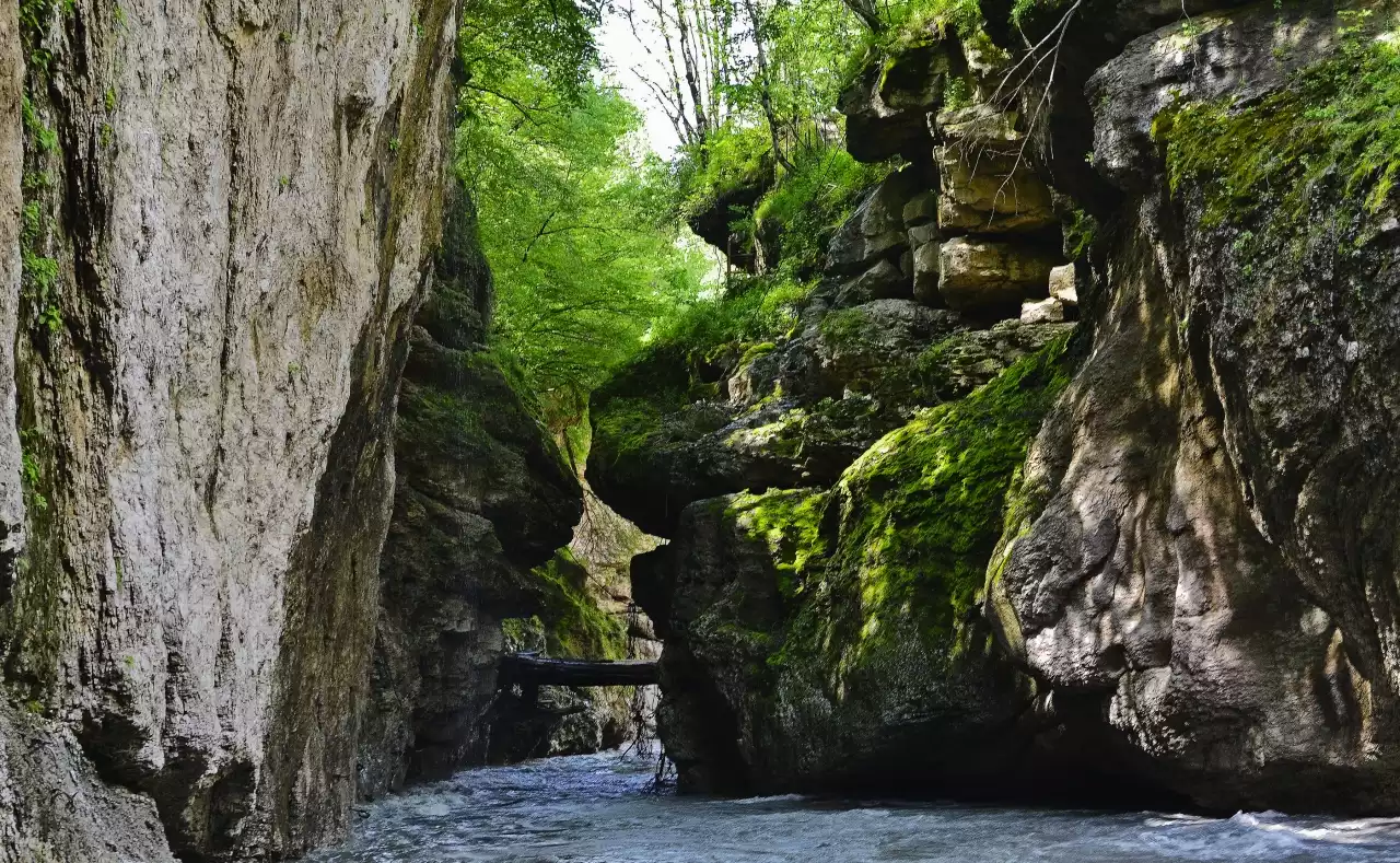 Хаджо́хская тесни́на (Каменномостский каньон) — участок ущелья реки Белой, в которой оборудован экскурсионный маршрут. Хаджохская теснина расположена на юго-западной окраине посёлка Каменномостский (Адыгея). Длина теснины – около 400 м. (ВикипедиЯ)