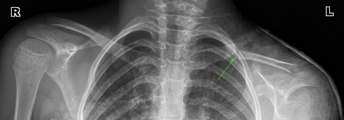 Травма случилась 6 марта, в предпраздничный день в детской больнице после рентгена сказали, что обычный перелом, смещения нет, наложили гипс и отпустили. Однако сегодня, 24 марта на контрольном снимке я вижу выраженное смещение каудального отломка книзу до 6 мм, ось кости деформирована углом, открытым книзу, до 40 градусов, Консолидация слабая. Рекомендую пока гипс не снимать, сходить к нормальному детскому травматологу-хирургу, наверняка он будет рекомендовать операцию с установлением пластины. Иначе срастется как попало, плечо будет ниже, испортится осанка и будет еще много разных проблем.