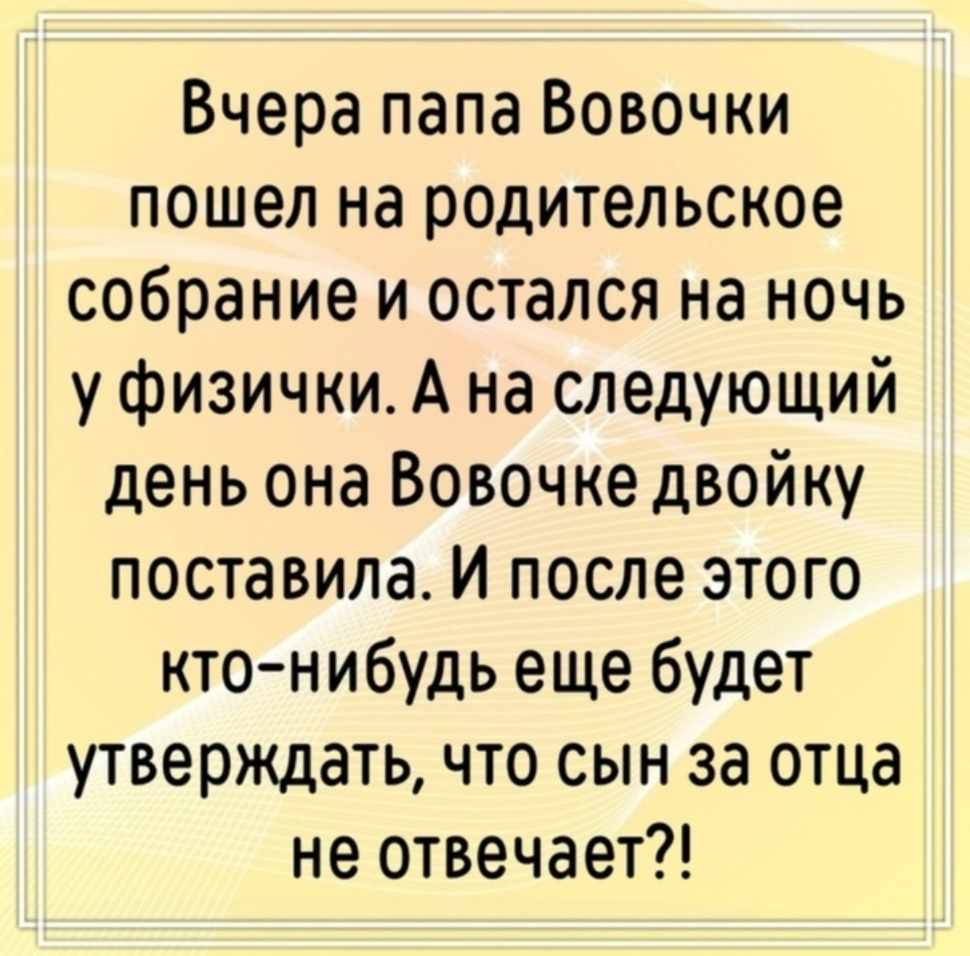 8 Tayrosan 9 часов назад Серия Юмор Из жизни школы Юмор Картинка с текстом Школа Учитель Родители и дети Школьники Сын Ещё 0
