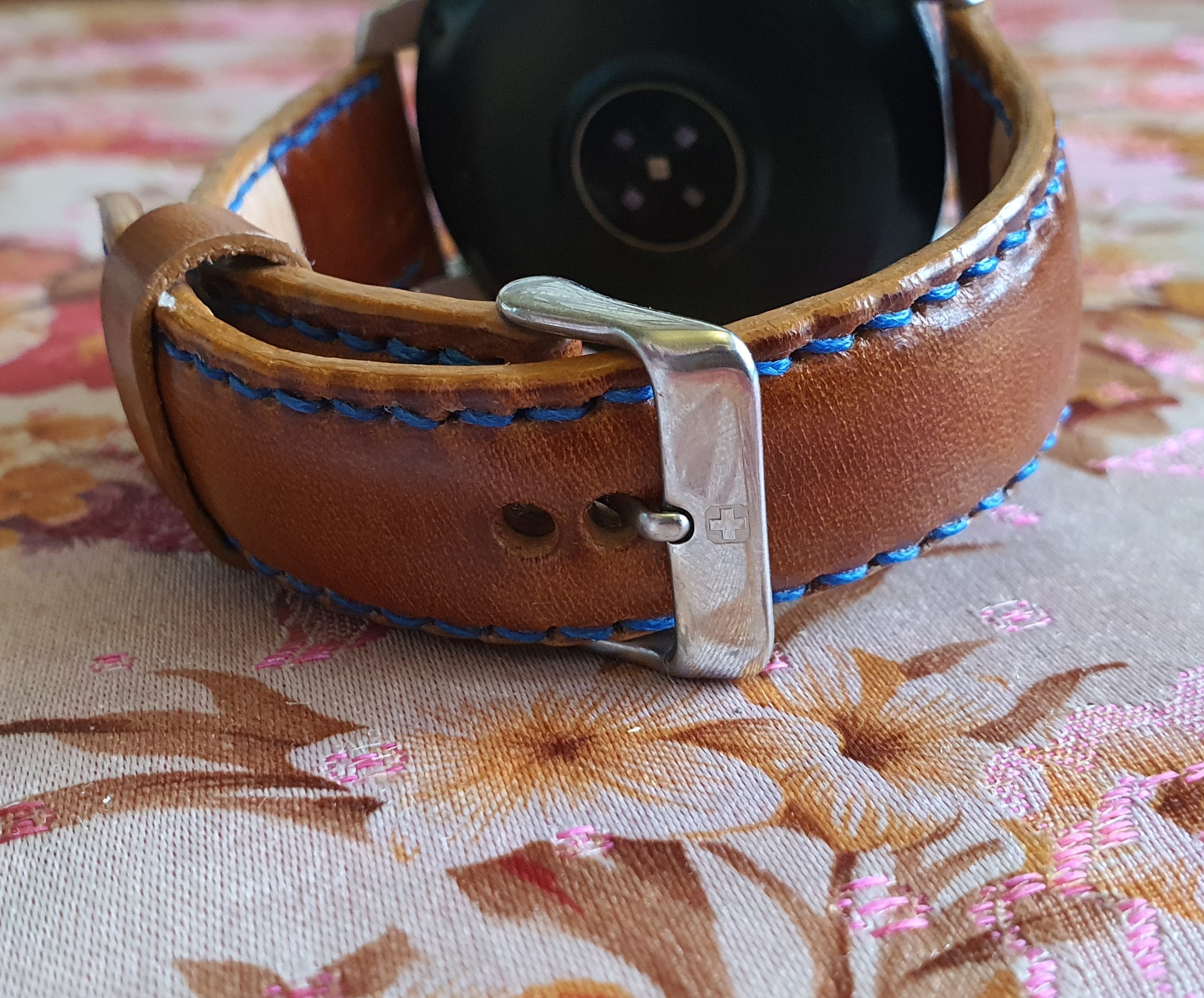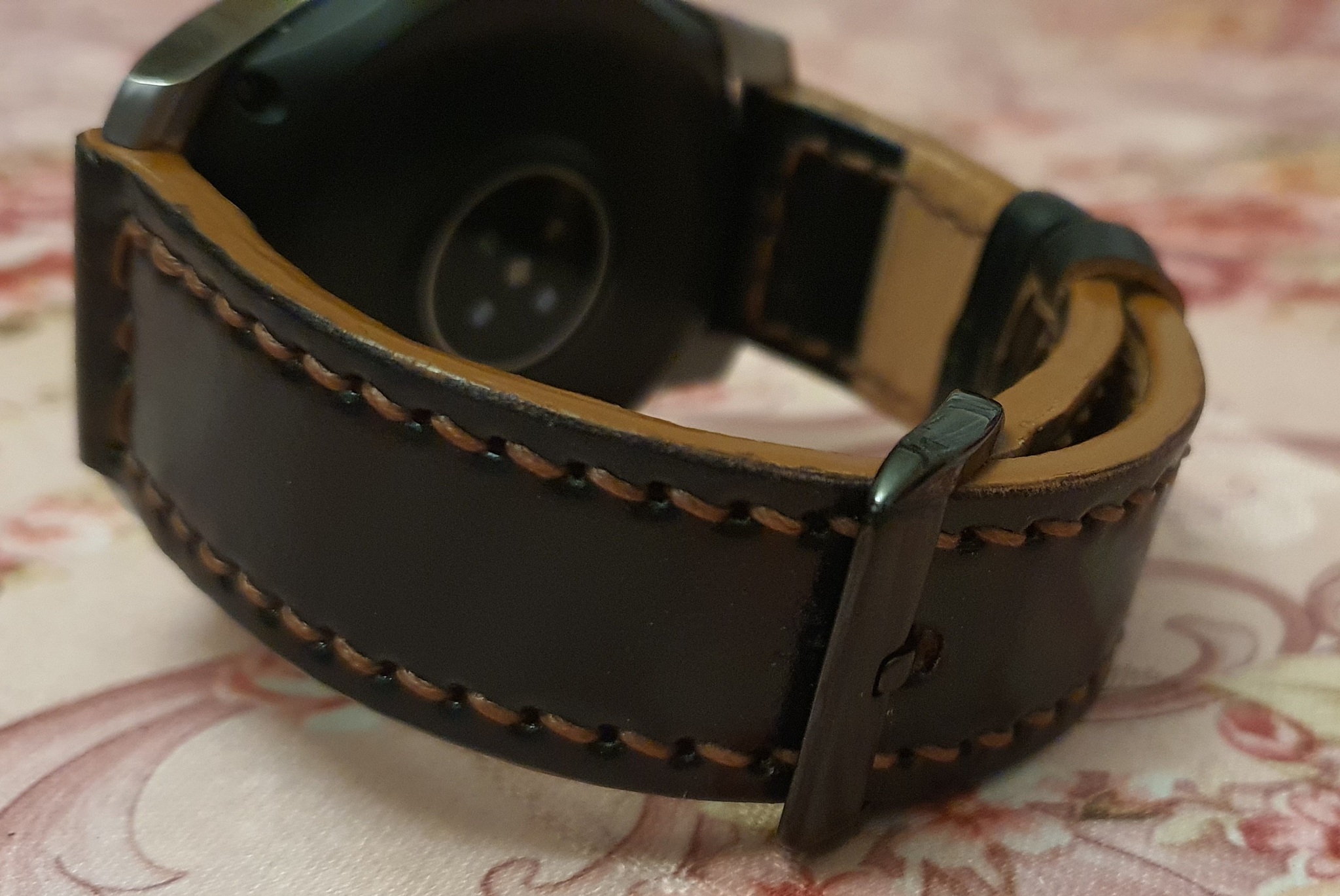 Ремешок для смартчасов, на заказ друга, новая для меня кожа, достаточно жёсткая, но друг остался остался доволен, смотрится в живую не плохо