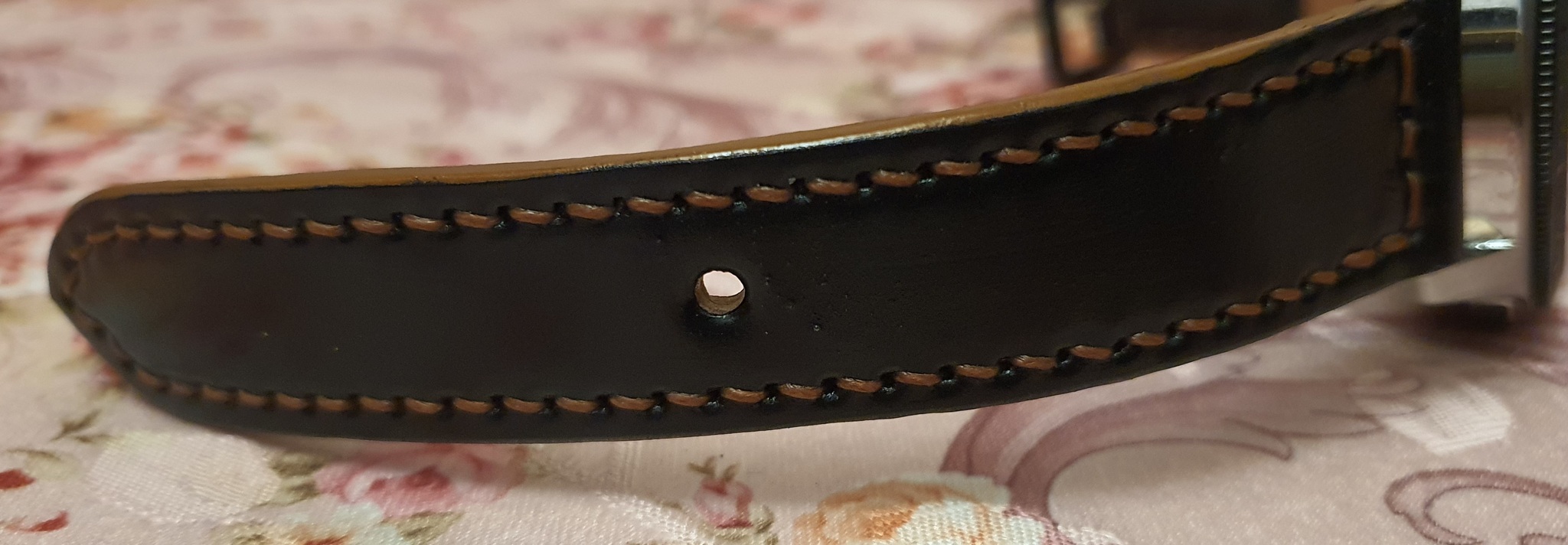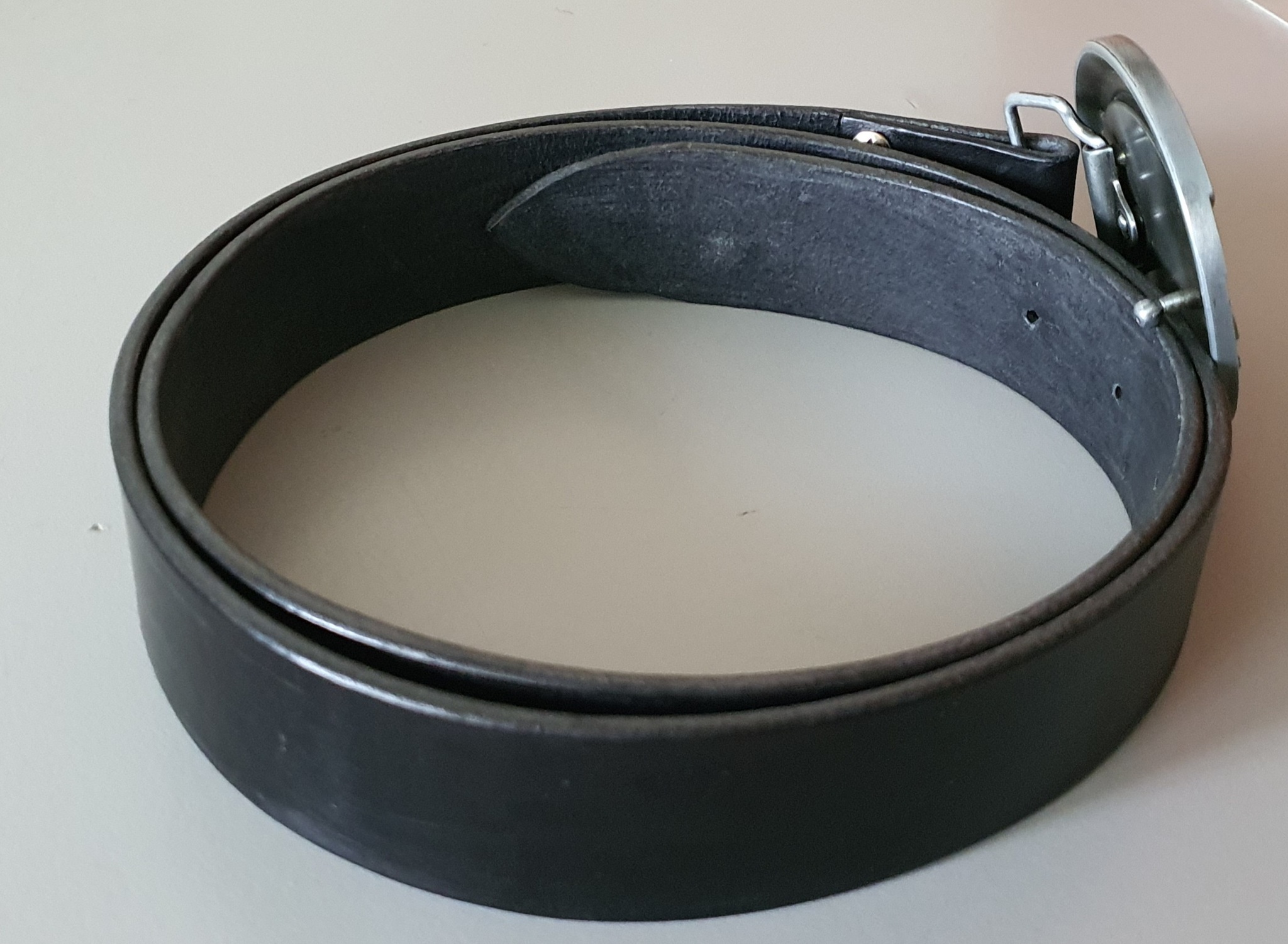 Обычный ремешок под бляшку, прошивать все ещё не получается, нужны пробойники другие