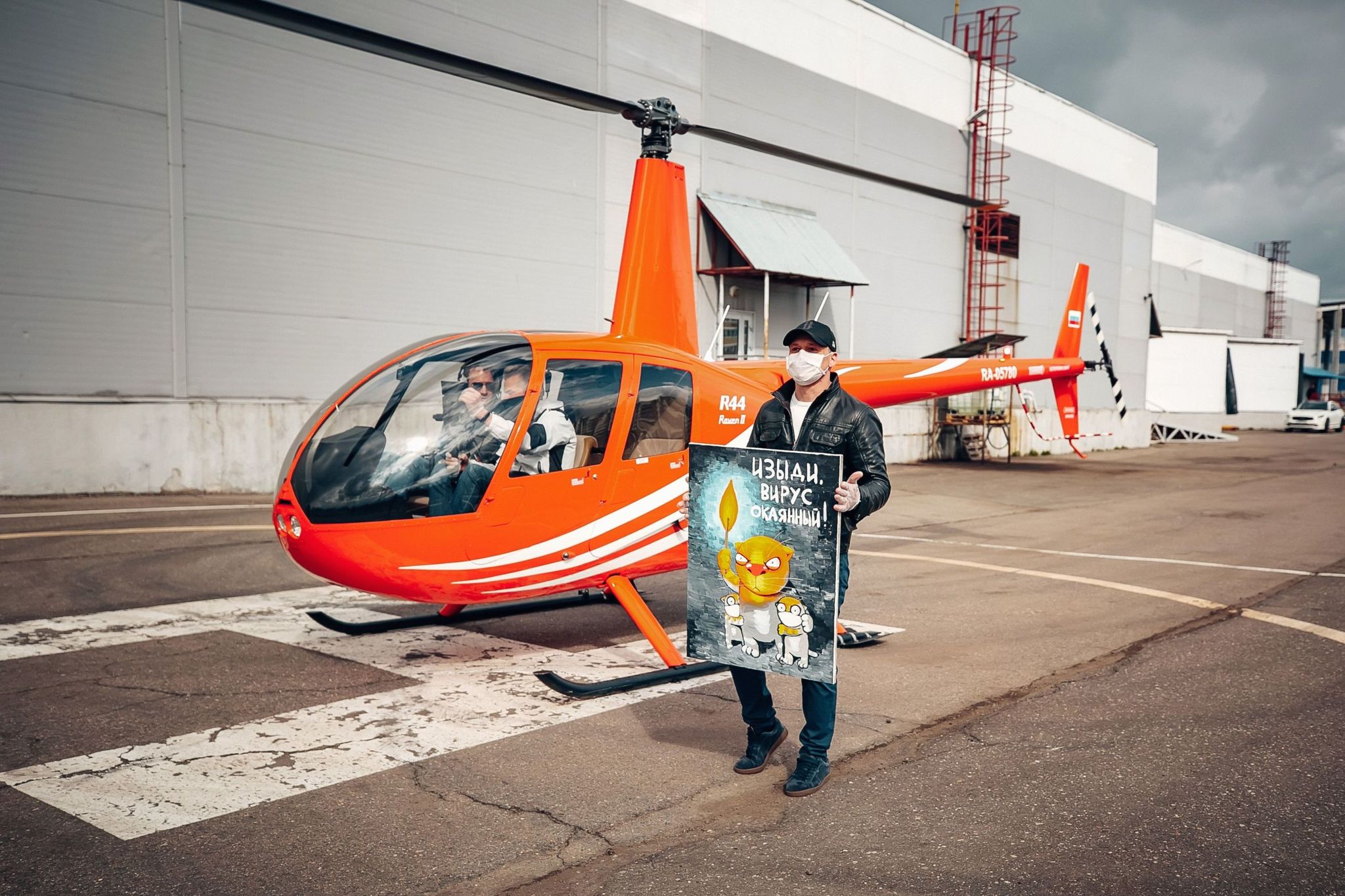 Картина известного художника Васи Ложкина сегодня облетела Кострому на новом вертолете бизнесмена Андрея Шелестова.Вася Ложкин, который прославился картинами со злыми котиками, в марте создал несколько картин, посвященных коронавирусу. Главная из них «Изыди, вирус окаянный» — ее, кстати, тут же купили, она попала в частную коллекцию ярославца Максима Дмитриева.