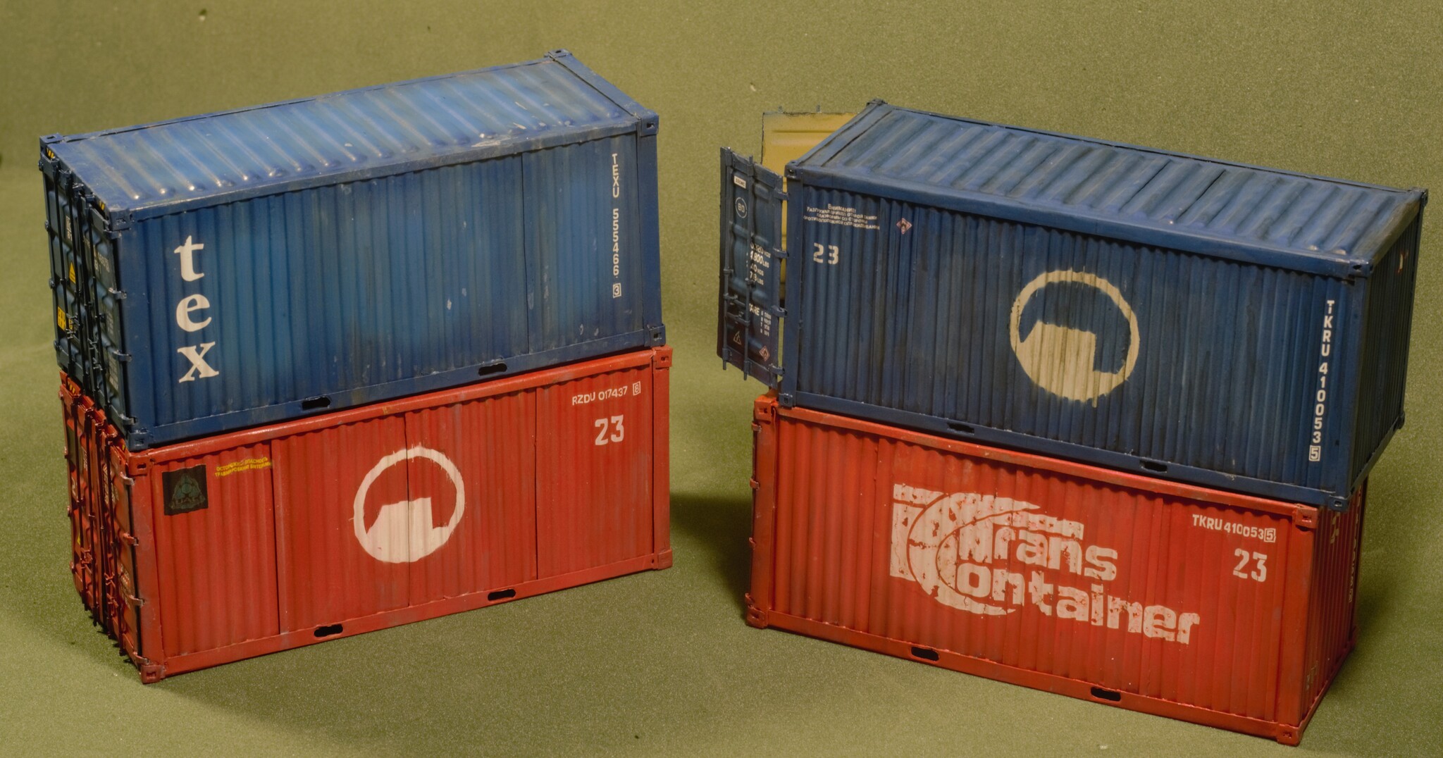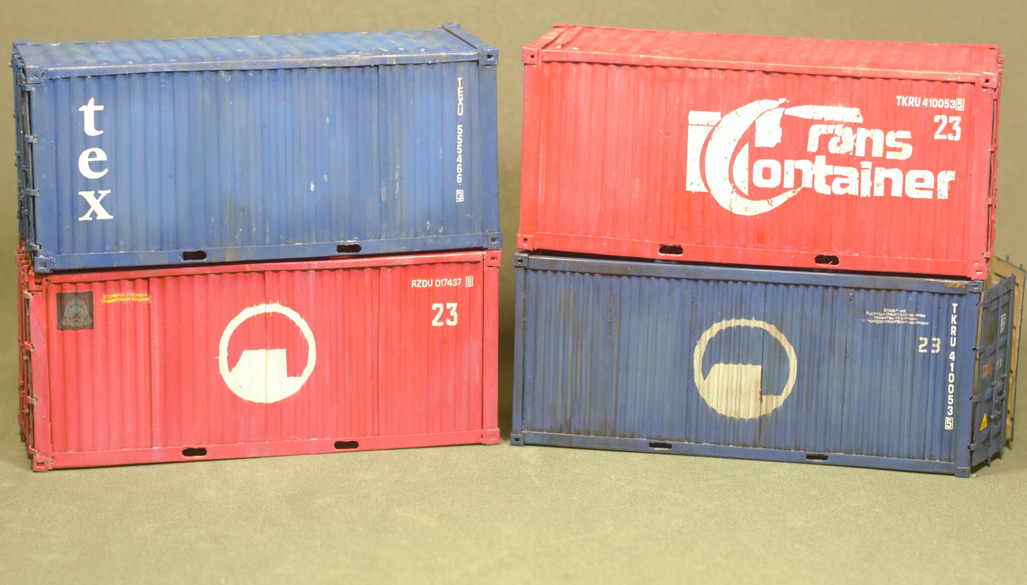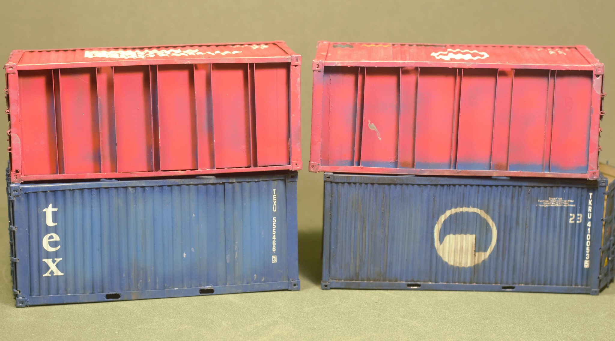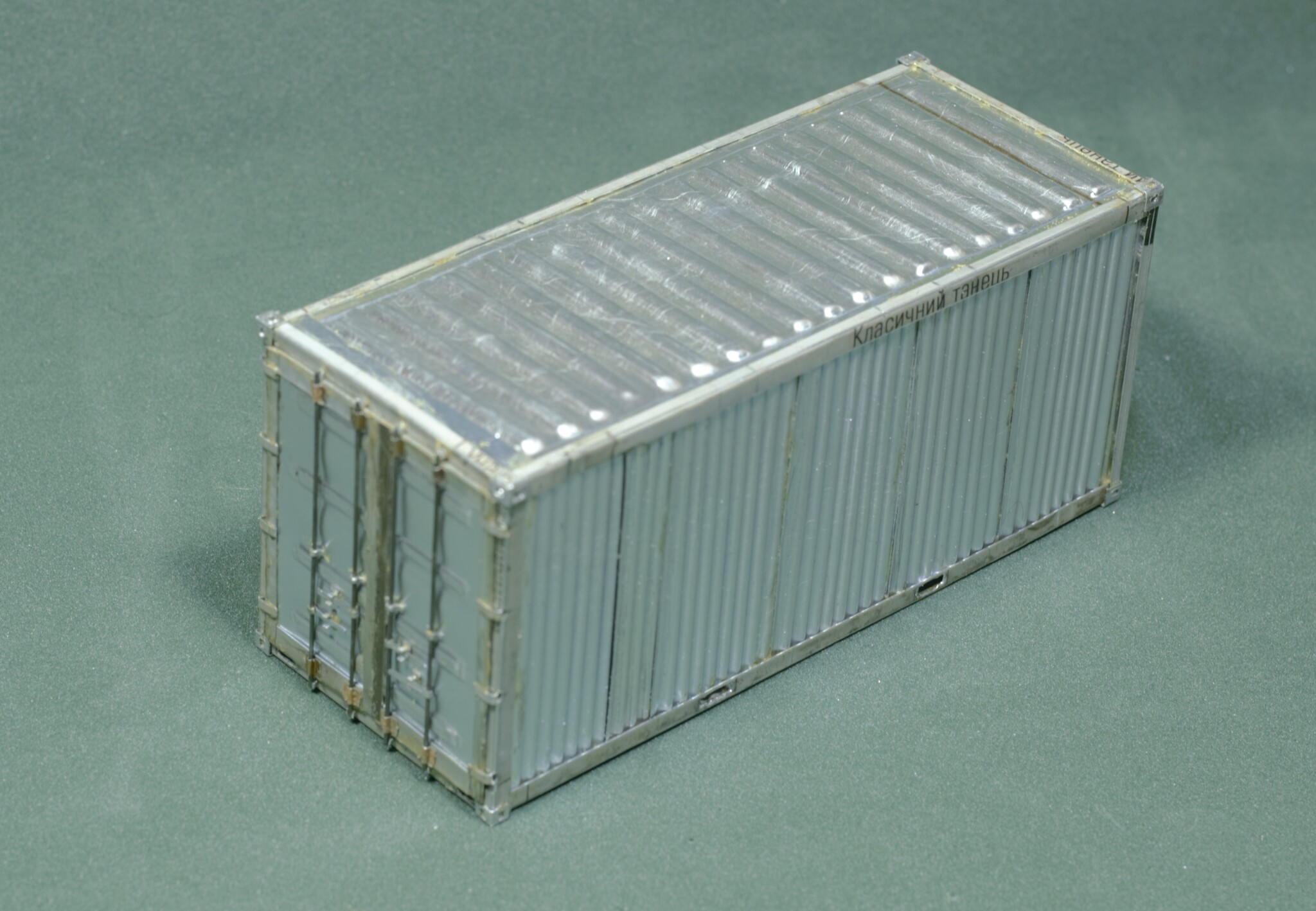 Контейнер после сборки, нанесения грунта, основной краски, технички и эффектов старения