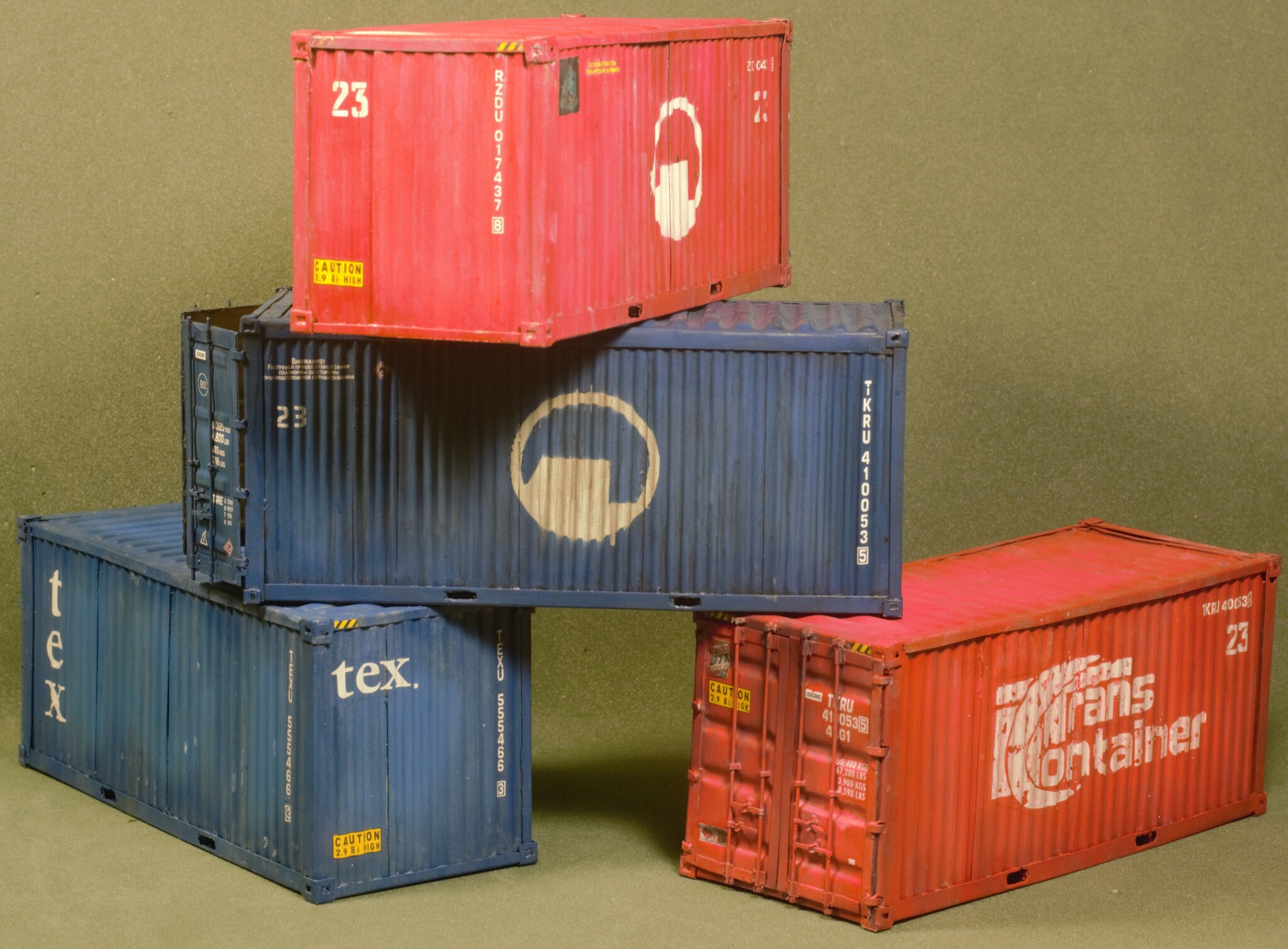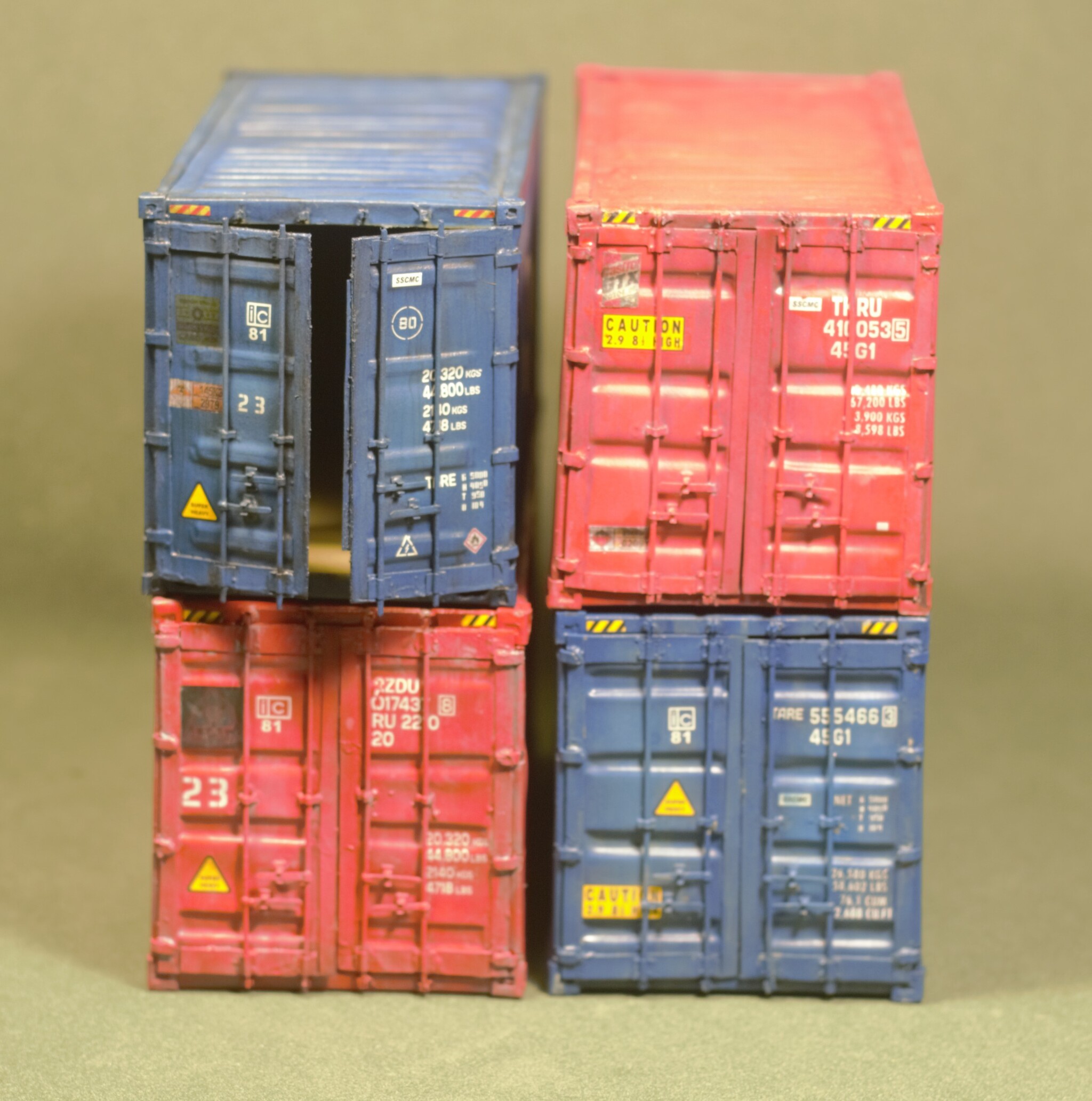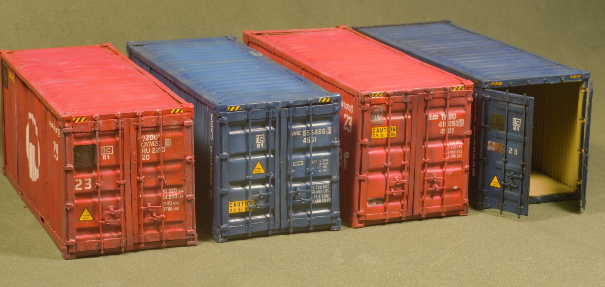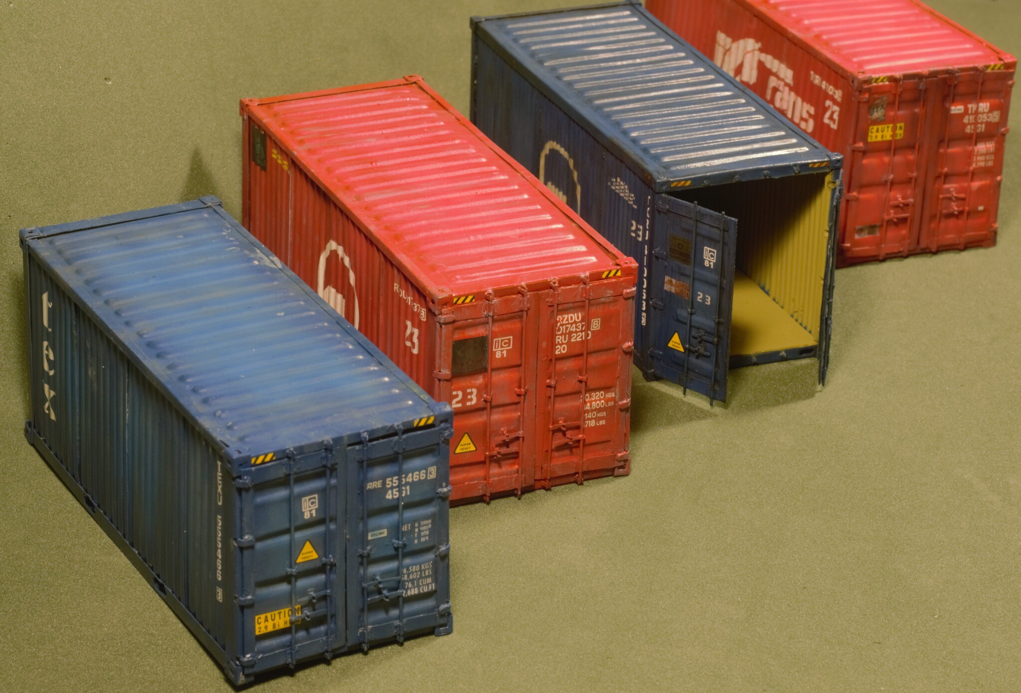 Контейнер после сборки, нанесения грунта, основной краски, технички и эффектов старения