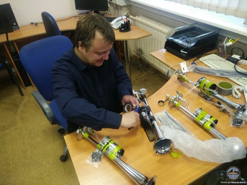 Наведение красоты аккуратными женскими ручками спасательницы. Теперь на каждом пневмогудке красуется лазерная гравировка «ПСО Экстремум».