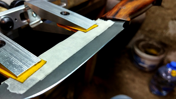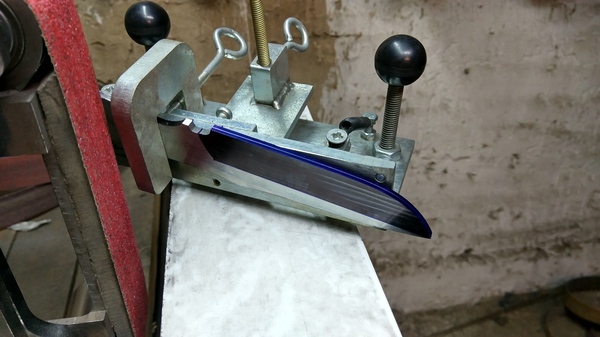 Линия разметки режущей кромки. Зажимаем в приспособе под названием "Гравицапа".