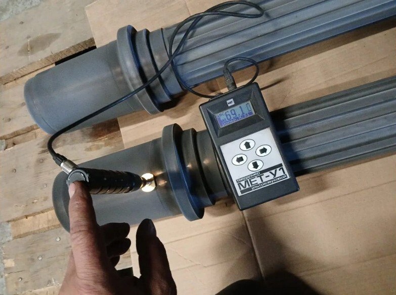 Азотирование — это процесс насыщения поверхности стальной детали атомарным азотом при высокой температуре. В результате на поверхности до 1 мм образуется очень твёрдый азотированный слой. После термообработки шпиндель приехал с твердостью поверхности HRC 69-70 ед.