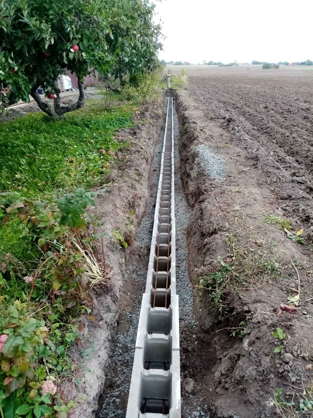 Начинаем с разметки и рытья траншеи под фундамент. Затем трамбовка, посыпка щебня и опять трамбовка. Следующий этап - фундаментные блоки, в которые закладывается арматура и заливается бетон.