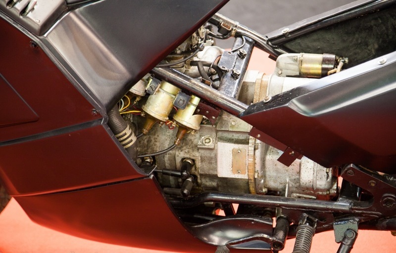 Своими обводами он чем-то напоминает мне легендарный спорт-турер BMW K1, появившийся на свет примерно в то же время (1988-й год). Как и на «баварце», тяга мотора передавалась на заднее колесо посредством кардана. Было построено 2 опытных варианта «Лидера»: первый — с уже упомянутым РПД, а второй — с более привычным 2-цилиндровым оппозитным ДВС от серийного мотоцикла «Урал».