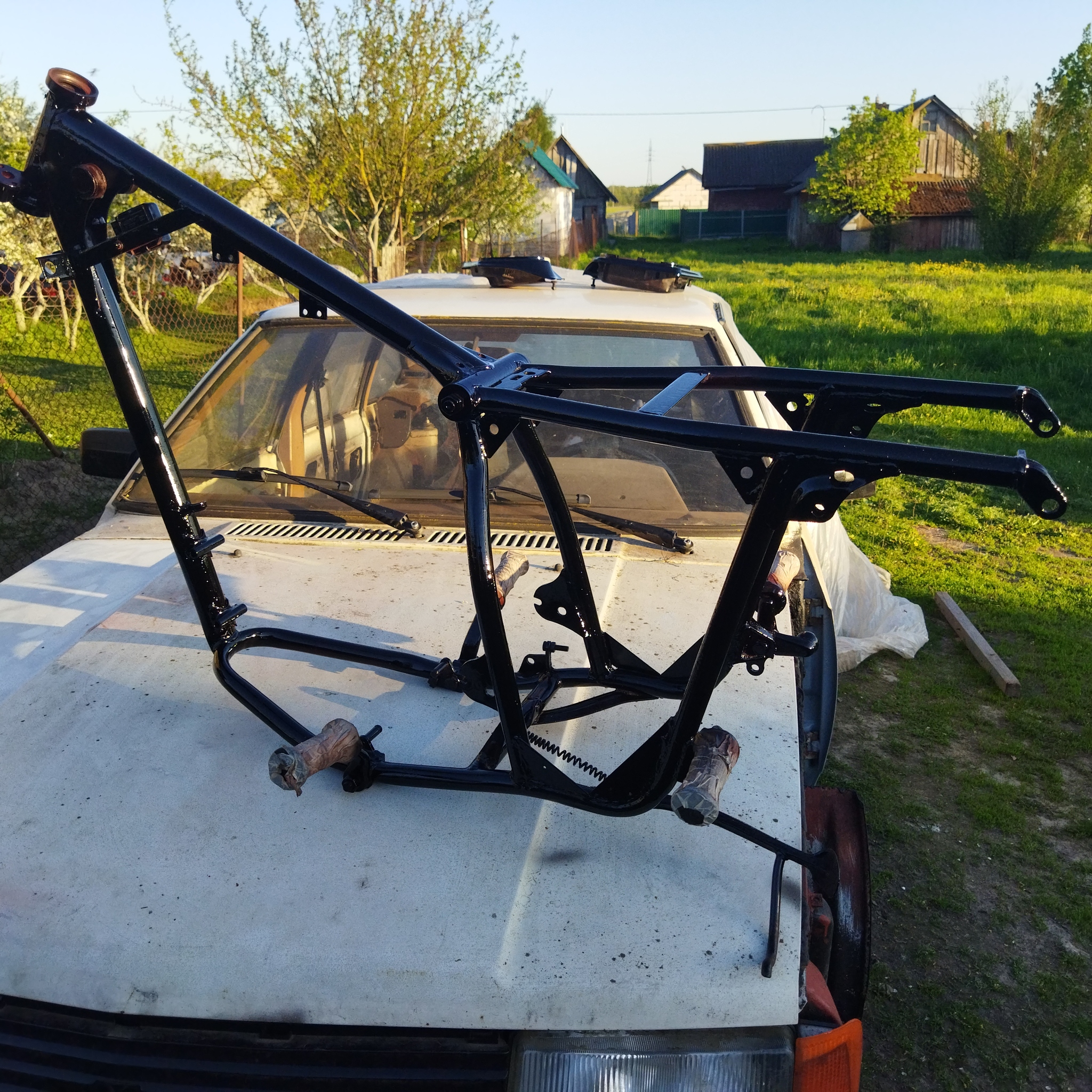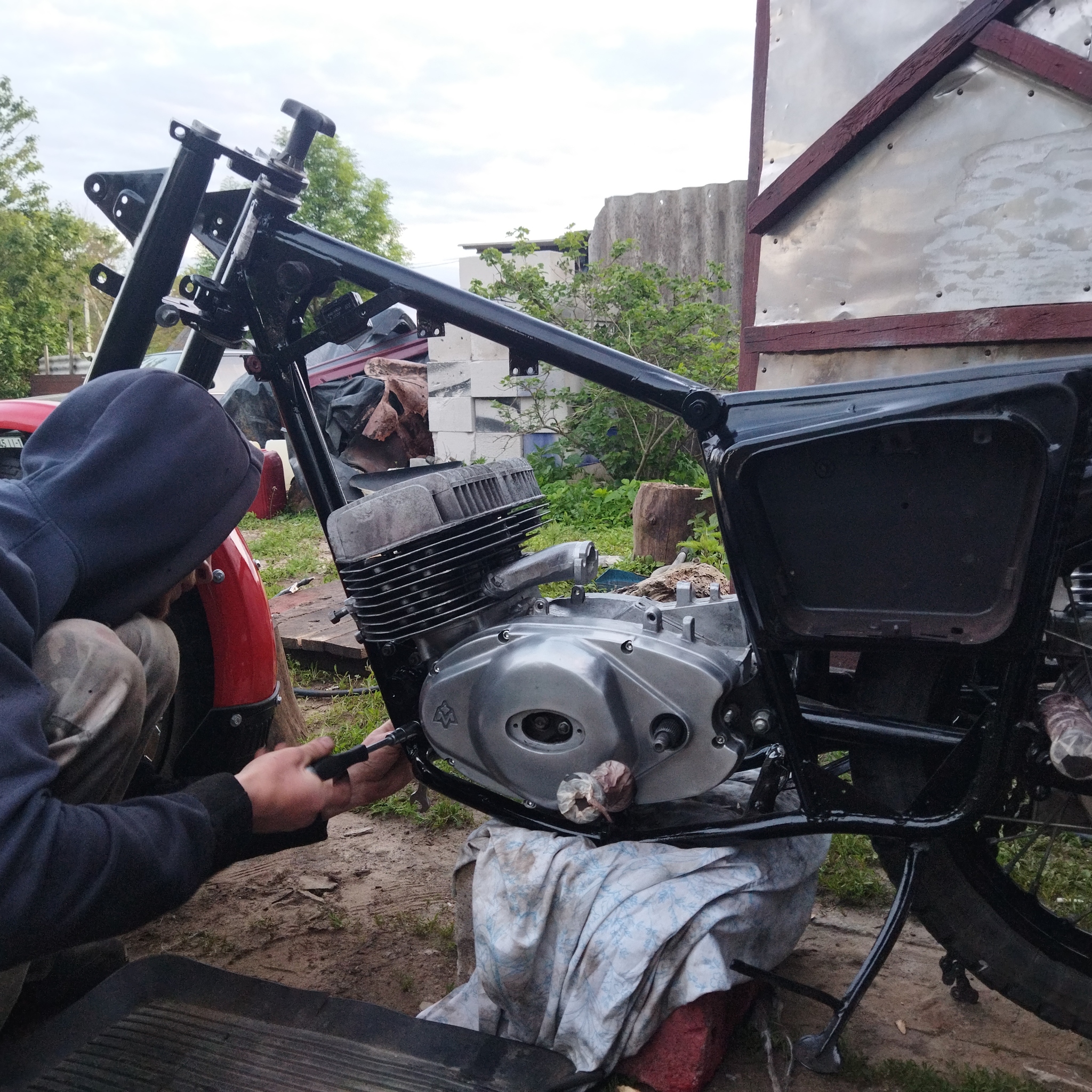 Всем привет! Мои подписчики наверняка помнят меня как чувака который почему то тащиться от древнего металлолома) поэтому не буду нарушать традицию и напишу вам о недавней работе- восстановлении советского мотоцикла Иж Юпитер 5. Куплен был в октябре прошлого года за 120$ в относительно неплохом состоянии- он запускался, ехал, проводка была в оригинальном виде, был в родной краске, но облезлый. Было сделано- заменён правый коленвал ( был с трещиной), заменена кпп ( плохо втыкалась вторая передача), был полностью разобран, вычищен и перекрашен, собран и отрегулирован. Знаменитый юпитеровский звон не ушел, ибо цпг не меняли. Главная задача была сделать его красивым и готовым к ежедневным поездкам и по-моему мне это удалось) дальше-фото: