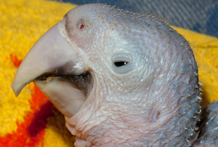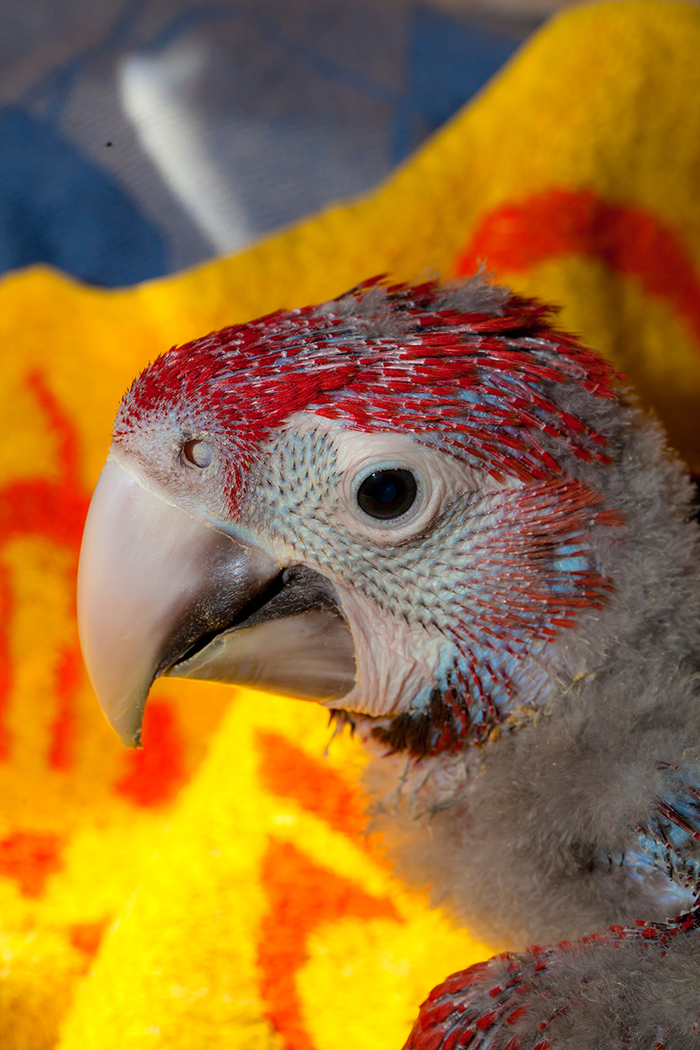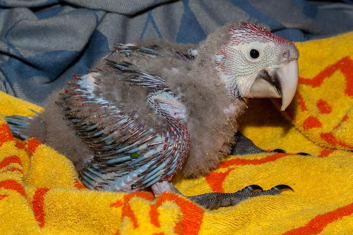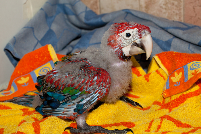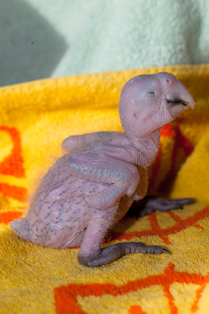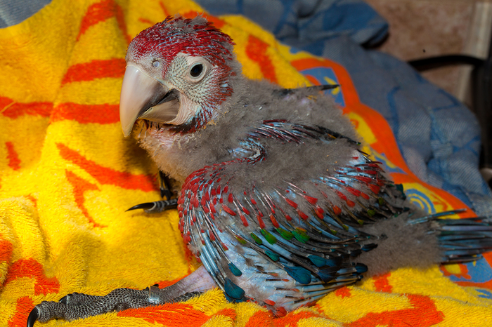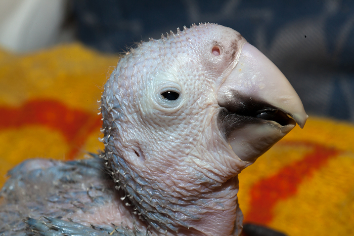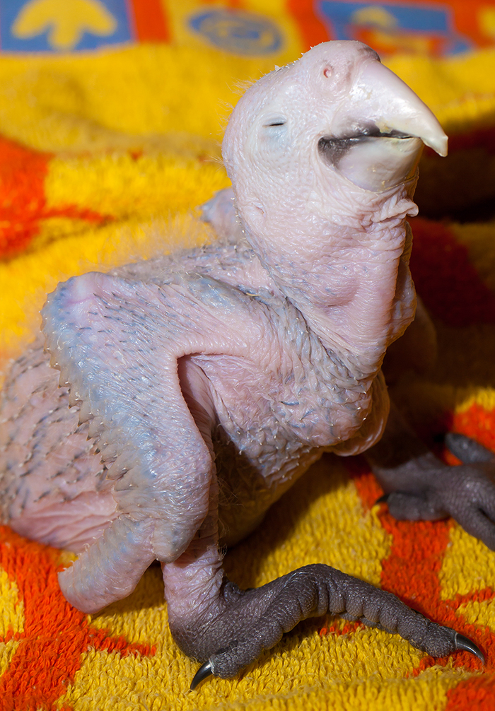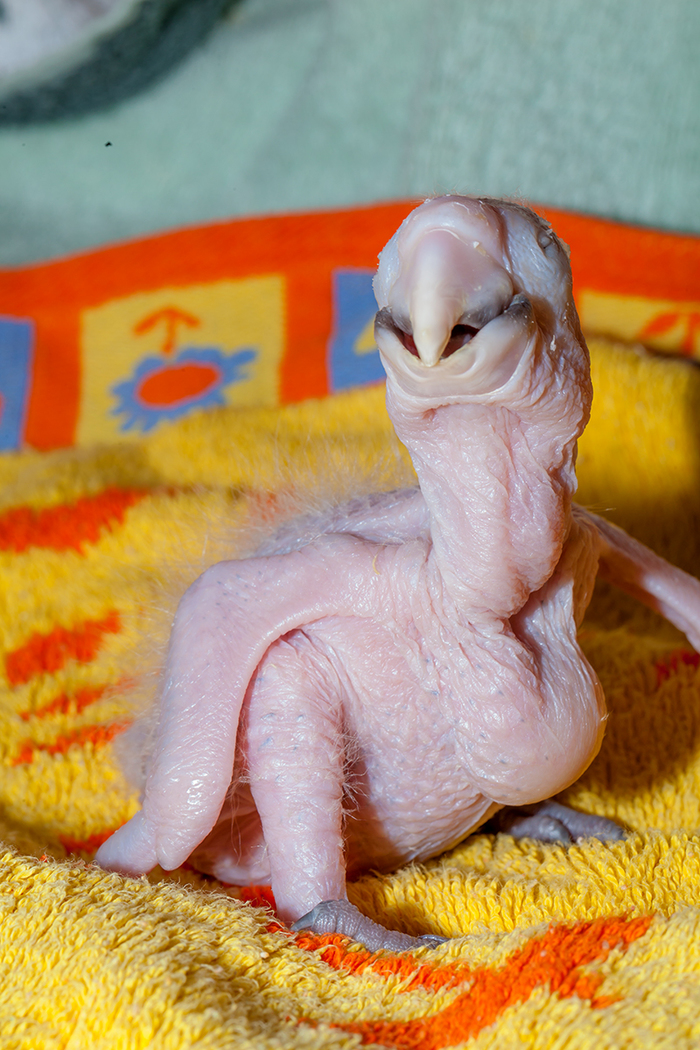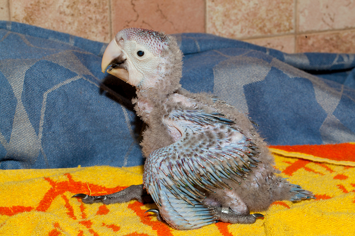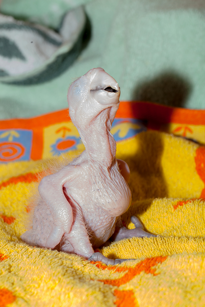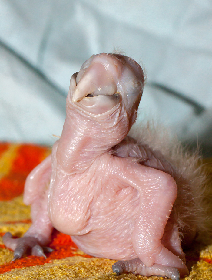Птена вырастила сама,у родителей первая кладка,не опытны,двух братанов его начали вылуплять раньше времени и они погибли.Это яйцо отняла и кормила птенца самостоятельно. Вырос такой вот Рауль-сын Фиделя)