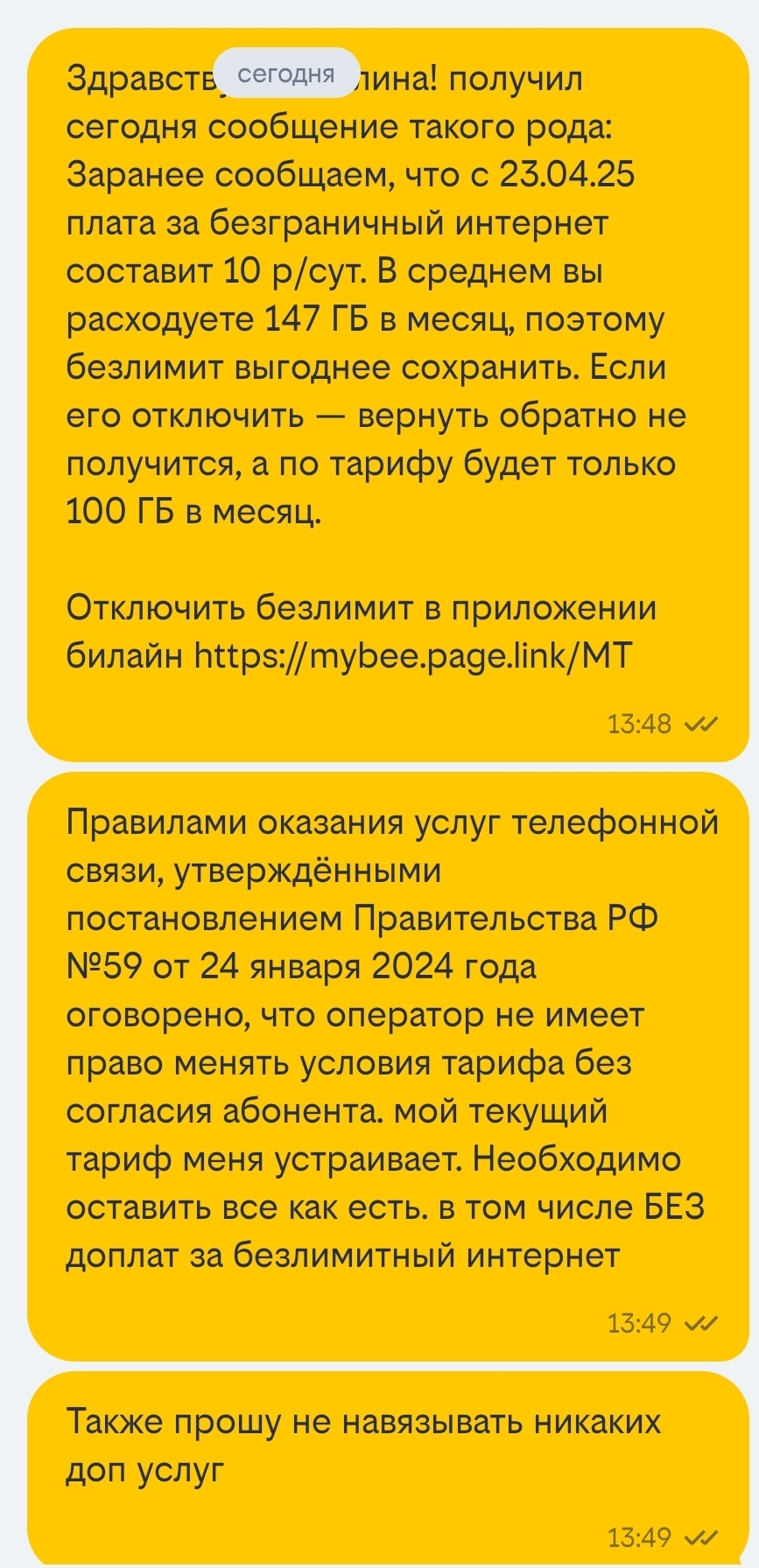 Вопрос к знатокам. Есть у меня тариф в Билайн, называется Близкие люди 6+. Пришло мне вот такое сообщение от Билайна: