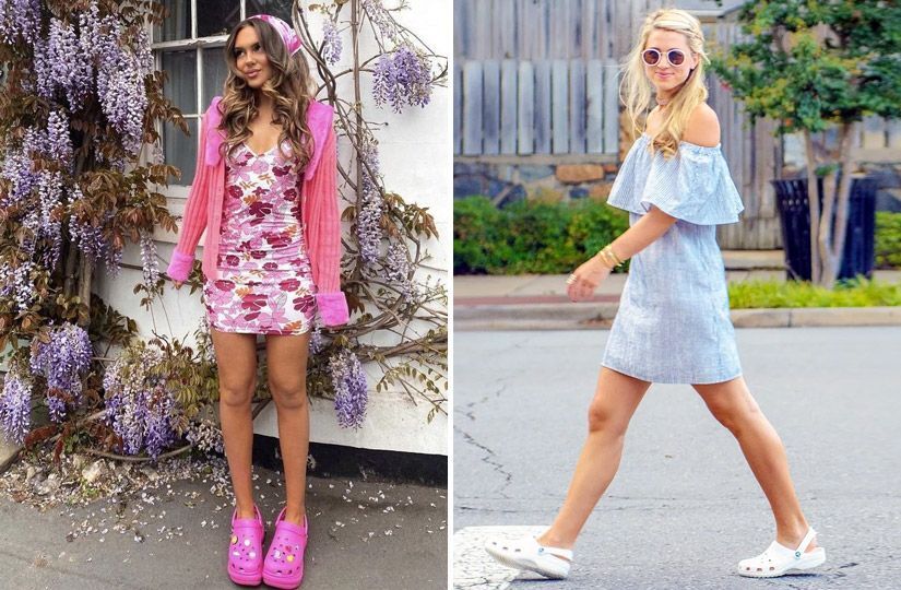Пожалуйста, вот тебе кроксы с платьем. В деревне и в прибрежных городах - охуенная тема. Летом точно так же рассекала по пляжу и по городу. Песочек вытряхнула - и красавица, в отличие от босоножек, в которых потные ноги с прилипшим песком потом скользят как по наждаку. У меня еще с массажными пупырышками кроксы и с супинатором, идеально грязь месить