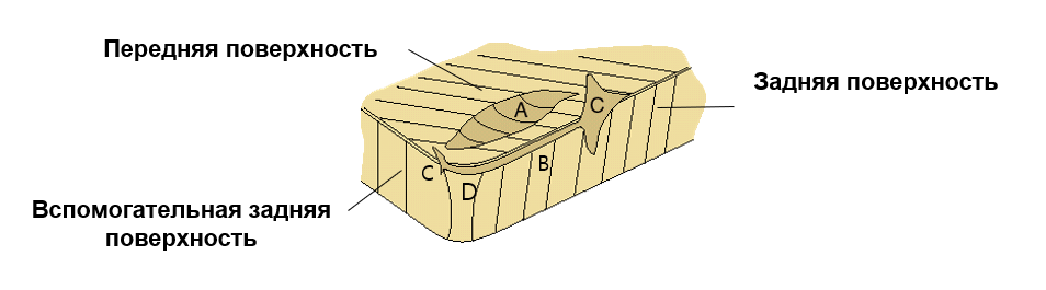 Основные понятия которые важно знать: передняя поверхность - это поверхность по которой сходит стружка и задняя поверхность - перпендикулярная ей. Режущая кромка соответственно находится на стыке этих двух поверхностей.